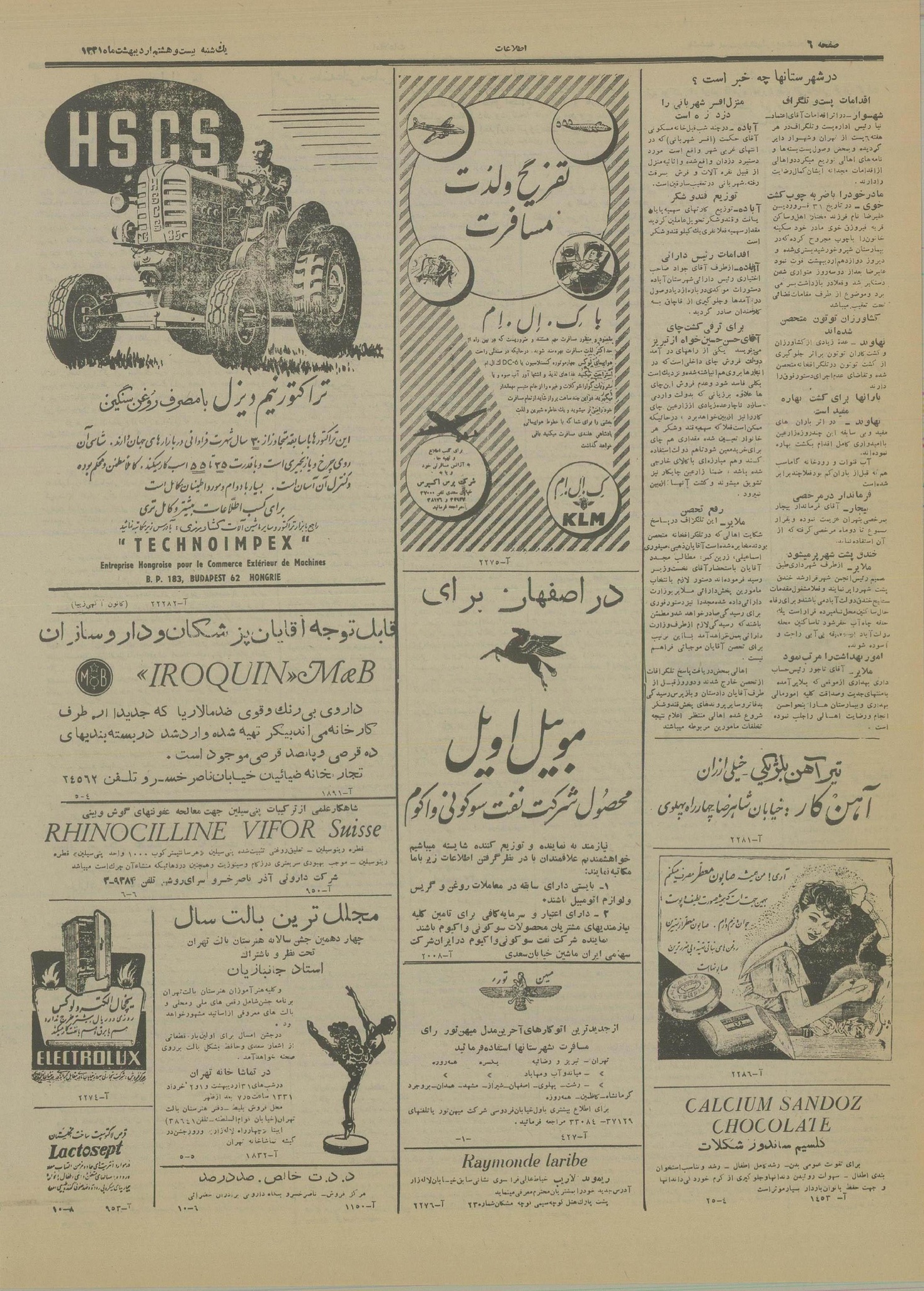 | کنونی | ۲۵ سپتامبر ۲۰۲۲، ساعت ۰۵:۴۴ | ۴٬۵۹۵×۶٬۲۳۹، ۸ صفحه (۶٫۸۹ مگابایت) | Bijan (گفتگو | مشارکتها) | == خلاصه == {{PD-Iran}} رده:روزنامه اطلاعات سال ۱۳۳۱ |