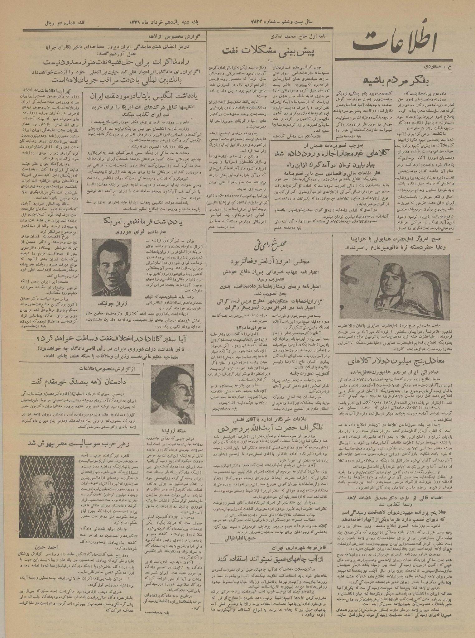 | کنونی | ۲۶ سپتامبر ۲۰۲۲، ساعت ۰۴:۵۲ | ۴٬۵۹۷×۶٬۱۷۷، ۸ صفحه (۷٫۰۲ مگابایت) | Bijan (گفتگو | مشارکتها) | == خلاصه == {{PD-Iran}} رده:روزنامه اطلاعات سال ۱۳۳۱ |