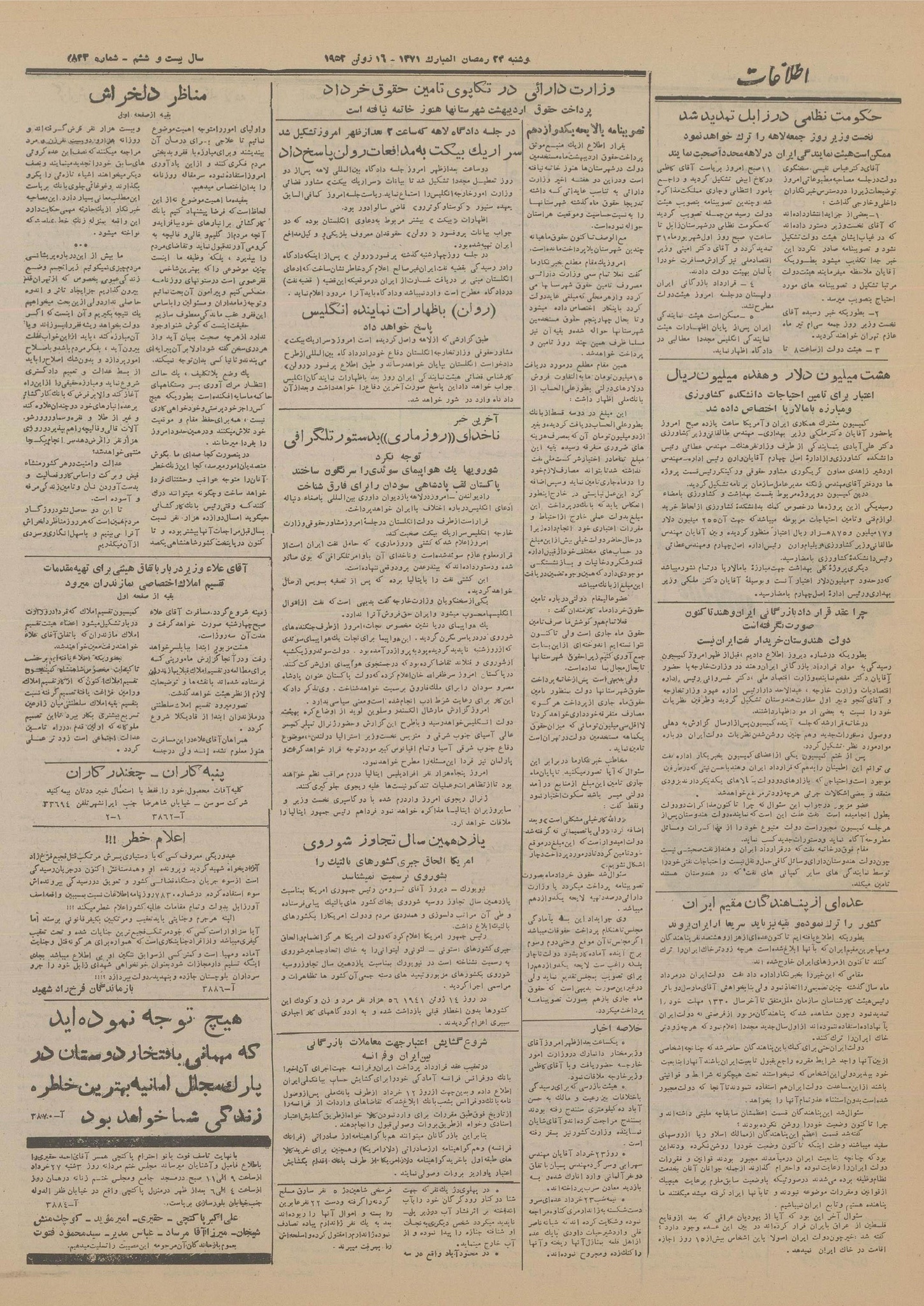 | کنونی | ۲۵ سپتامبر ۲۰۲۲، ساعت ۱۰:۵۴ | ۴٬۵۴۳×۶٬۳۸۵، ۸ صفحه (۷٫۱۸ مگابایت) | Bijan (گفتگو | مشارکتها) | == خلاصه == {{PD-Iran}} رده:روزنامه اطلاعات سال ۱۳۳۱ |