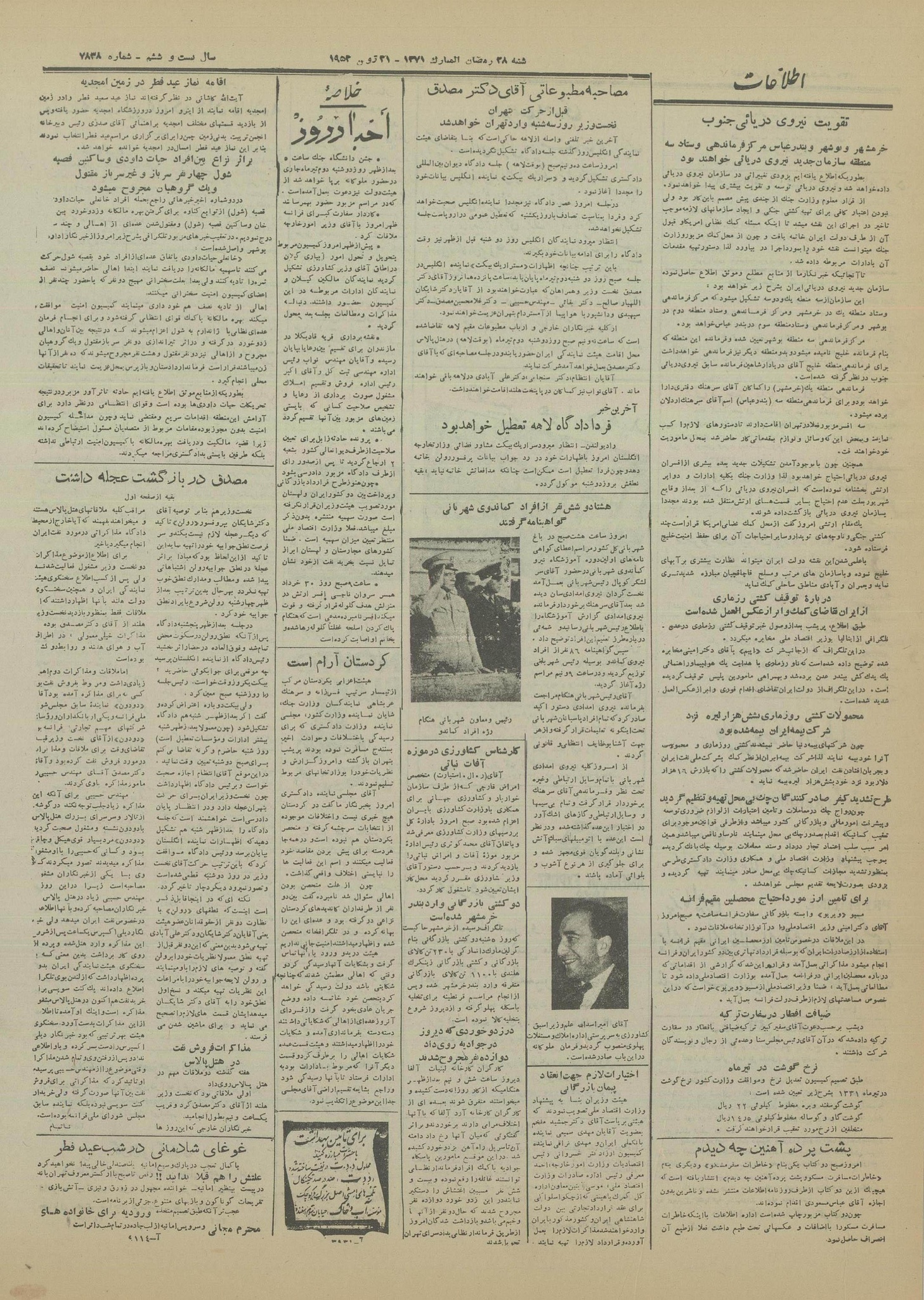 | کنونی | ۲۵ سپتامبر ۲۰۲۲، ساعت ۱۰:۵۷ | ۴٬۴۹۷×۶٬۳۱۰، ۱۰ صفحه (۹٫۳۹ مگابایت) | Bijan (گفتگو | مشارکتها) | == خلاصه == {{PD-Iran}} رده:روزنامه اطلاعات سال ۱۳۳۱ |