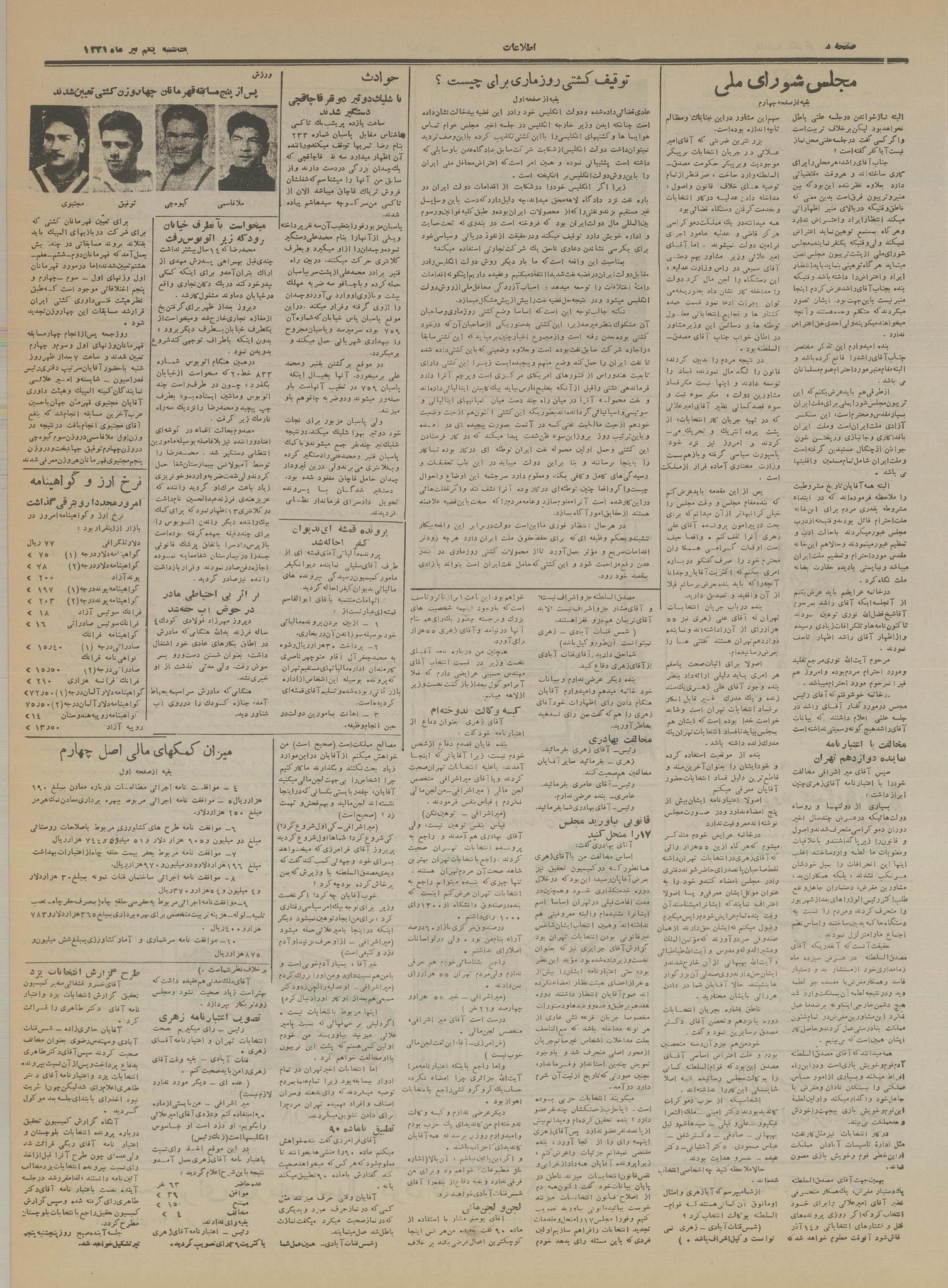 | کنونی | ۲۷ سپتامبر ۲۰۲۲، ساعت ۰۵:۰۵ | ۴٬۵۰۸×۶٬۲۷۷، ۸ صفحه (۷٫۳۹ مگابایت) | Bijan (گفتگو | مشارکتها) | == خلاصه == {{PD-Iran}} رده:روزنامه اطلاعات سال ۱۳۳۱ |