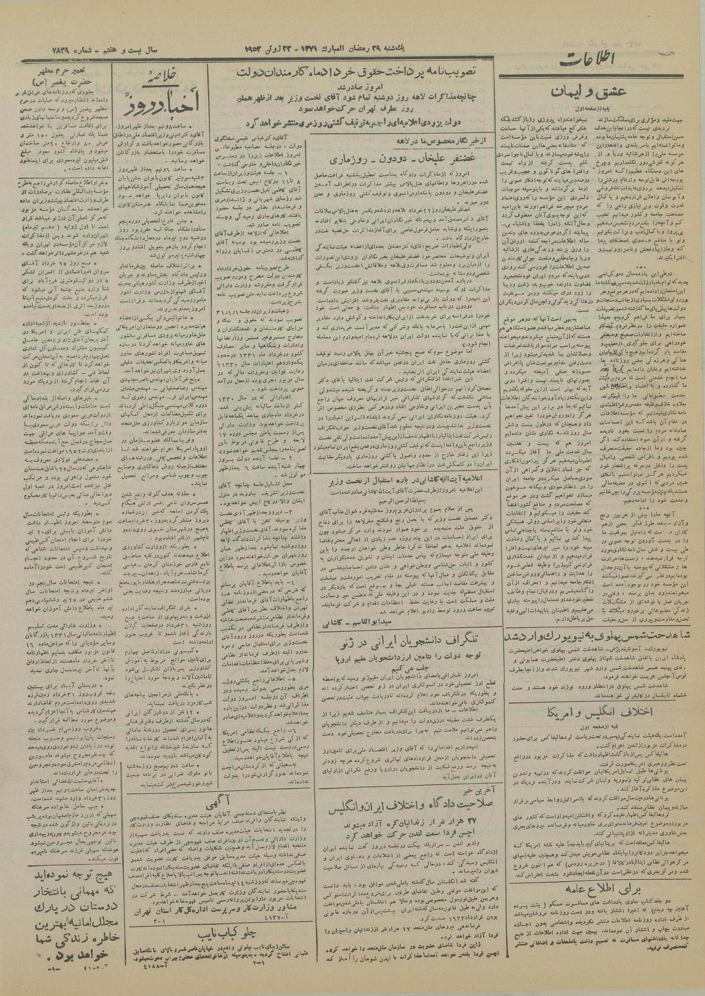 | کنونی | ۲۷ سپتامبر ۲۰۲۲، ساعت ۰۵:۰۵ | ۴٬۵۰۸×۶٬۲۷۷، ۸ صفحه (۷٫۳۹ مگابایت) | Bijan (گفتگو | مشارکتها) | == خلاصه == {{PD-Iran}} رده:روزنامه اطلاعات سال ۱۳۳۱ |