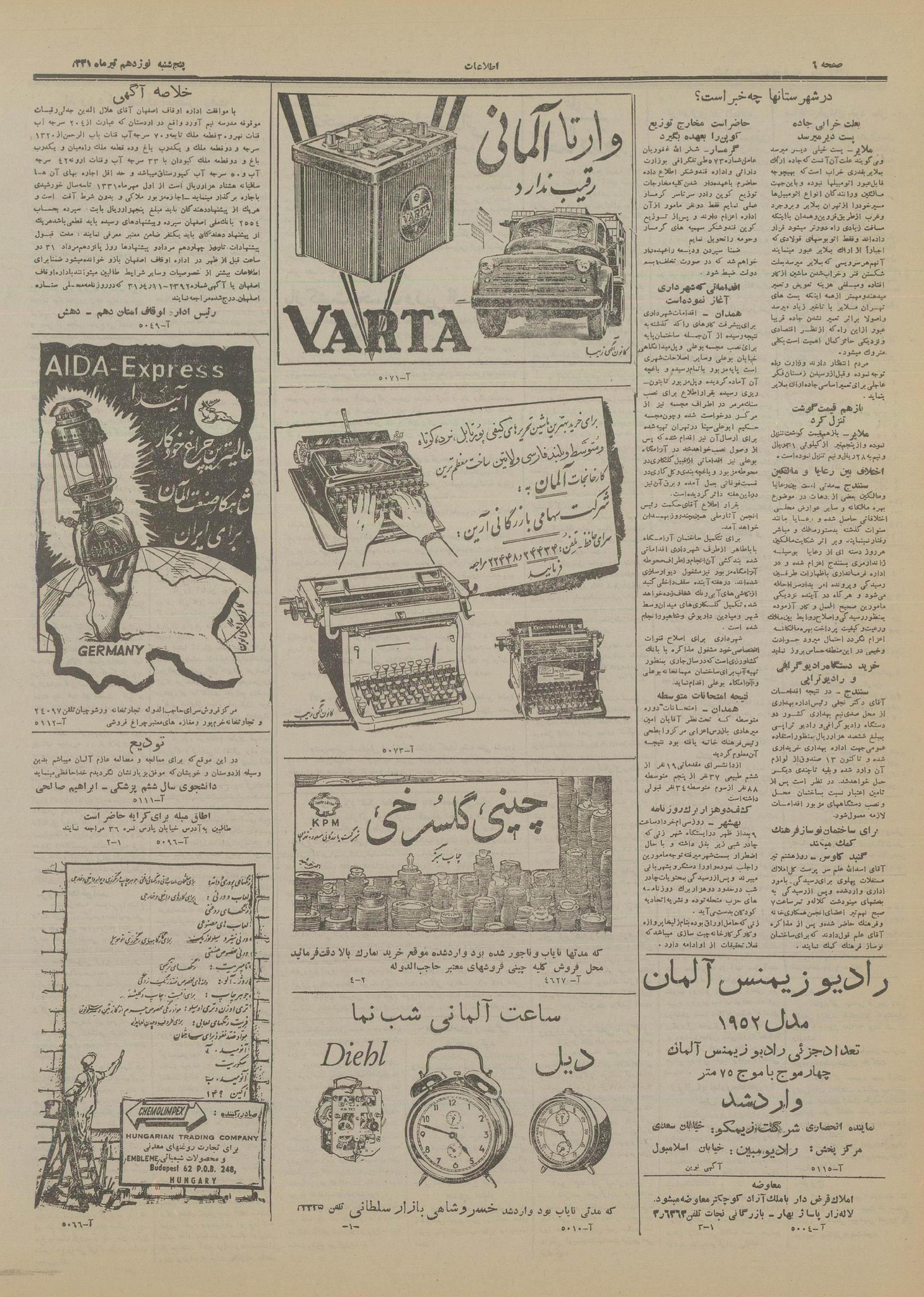 | کنونی | ۲۷ سپتامبر ۲۰۲۲، ساعت ۰۵:۱۶ | ۴٬۵۲۵×۶٬۴۱۲، ۸ صفحه (۷٫۳۴ مگابایت) | Bijan (گفتگو | مشارکتها) | == خلاصه == {{PD-Iran}} رده:روزنامه اطلاعات سال ۱۳۳۱ |