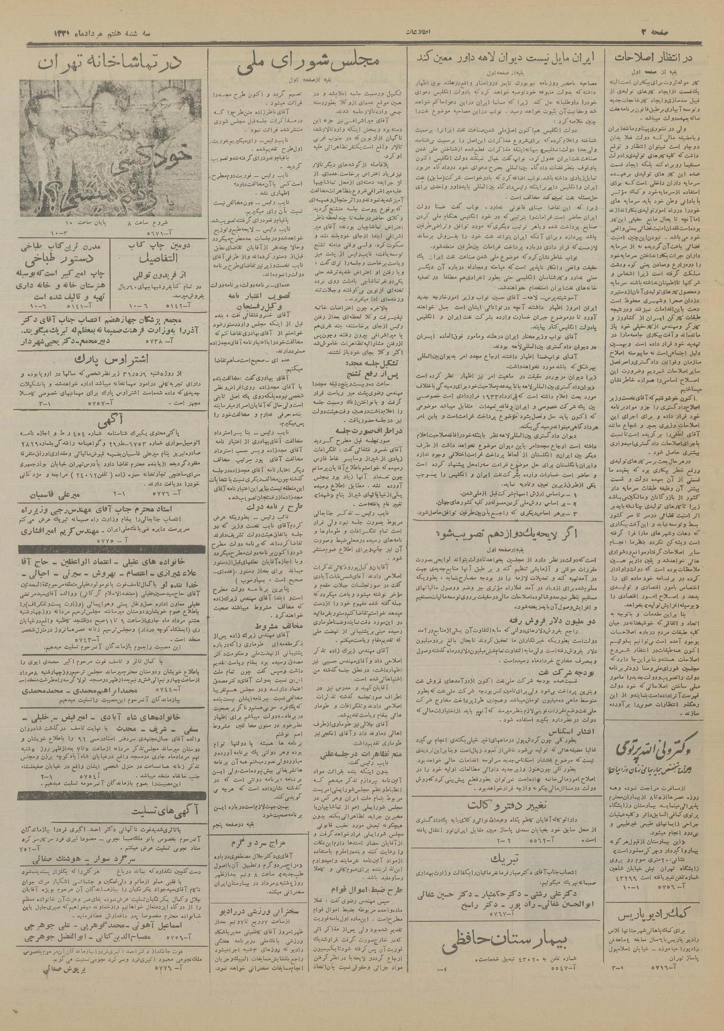 | کنونی | ۲۸ سپتامبر ۲۰۲۲، ساعت ۰۵:۰۳ | ۴٬۵۶۸×۶٬۲۳۷، ۸ صفحه (۷٫۳۲ مگابایت) | Bijan (گفتگو | مشارکتها) | == خلاصه == {{PD-Iran}} رده:روزنامه اطلاعات سال ۱۳۳۱ |