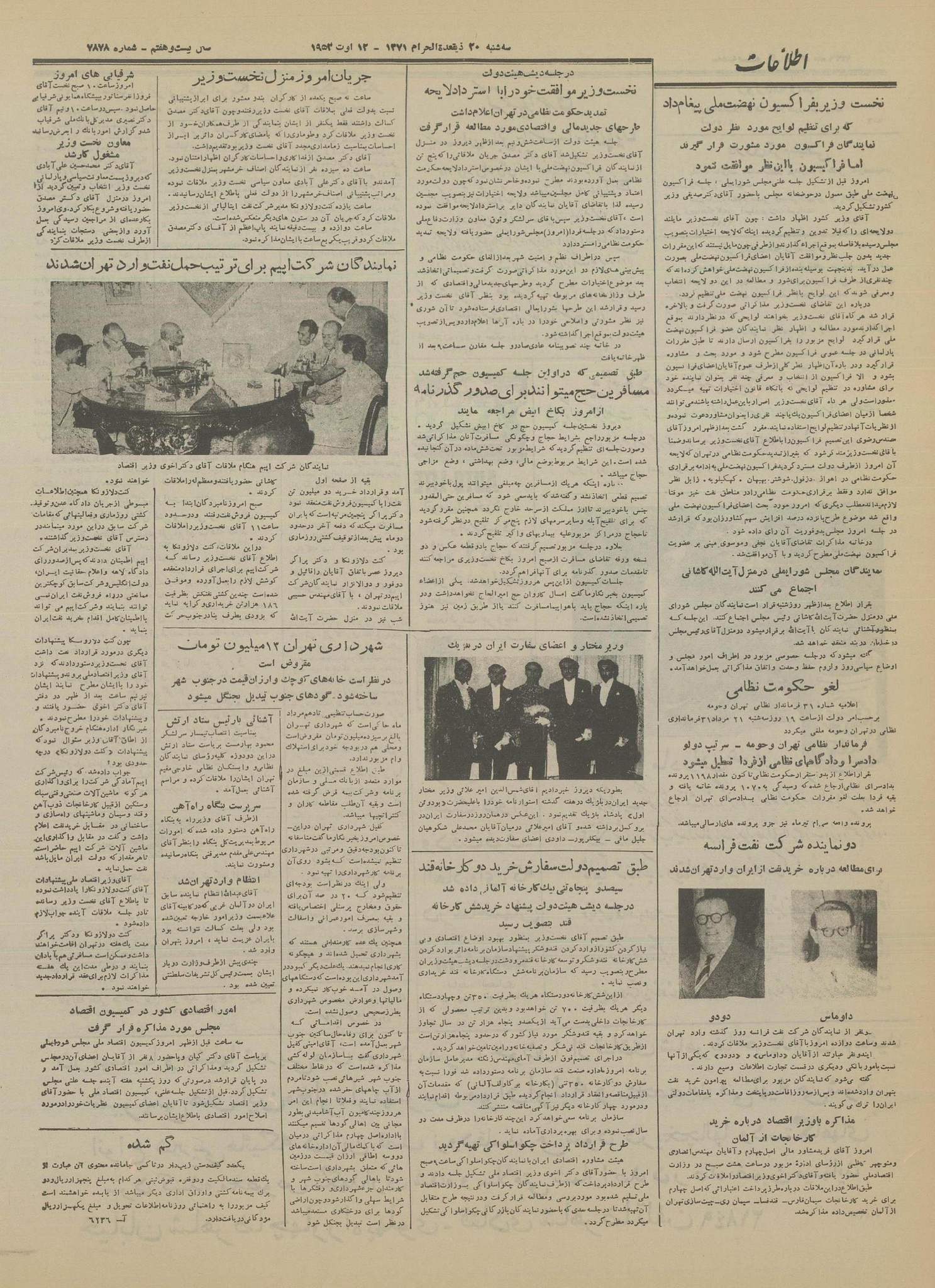 | کنونی | ۲۸ سپتامبر ۲۰۲۲، ساعت ۰۵:۱۲ | ۴٬۴۹۷×۶٬۲۲۰، ۸ صفحه (۷٫۳۶ مگابایت) | Bijan (گفتگو | مشارکتها) | == خلاصه == {{PD-Iran}} رده:روزنامه اطلاعات سال ۱۳۳۱ |