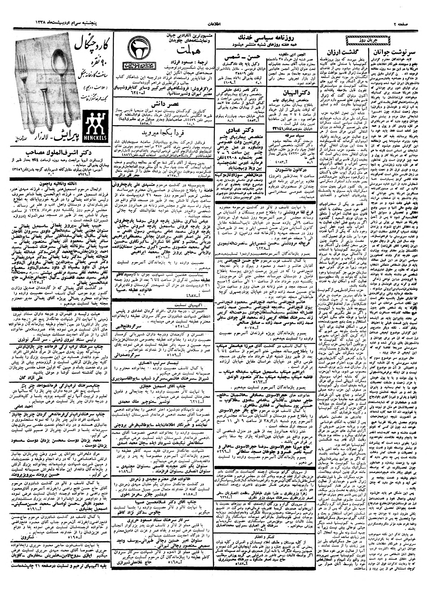 | کنونی | ۱۰ ژوئن ۲۰۲۳، ساعت ۱۹:۰۳ | ۱۰٬۵۸۱×۱۴٬۷۶۴، ۲۴ صفحه (۴۴٫۹۶ مگابایت) | Bijan (گفتگو | مشارکتها) | == خلاصه == رده:روزنامه اطلاعات سال ۱۳۳۸ |
