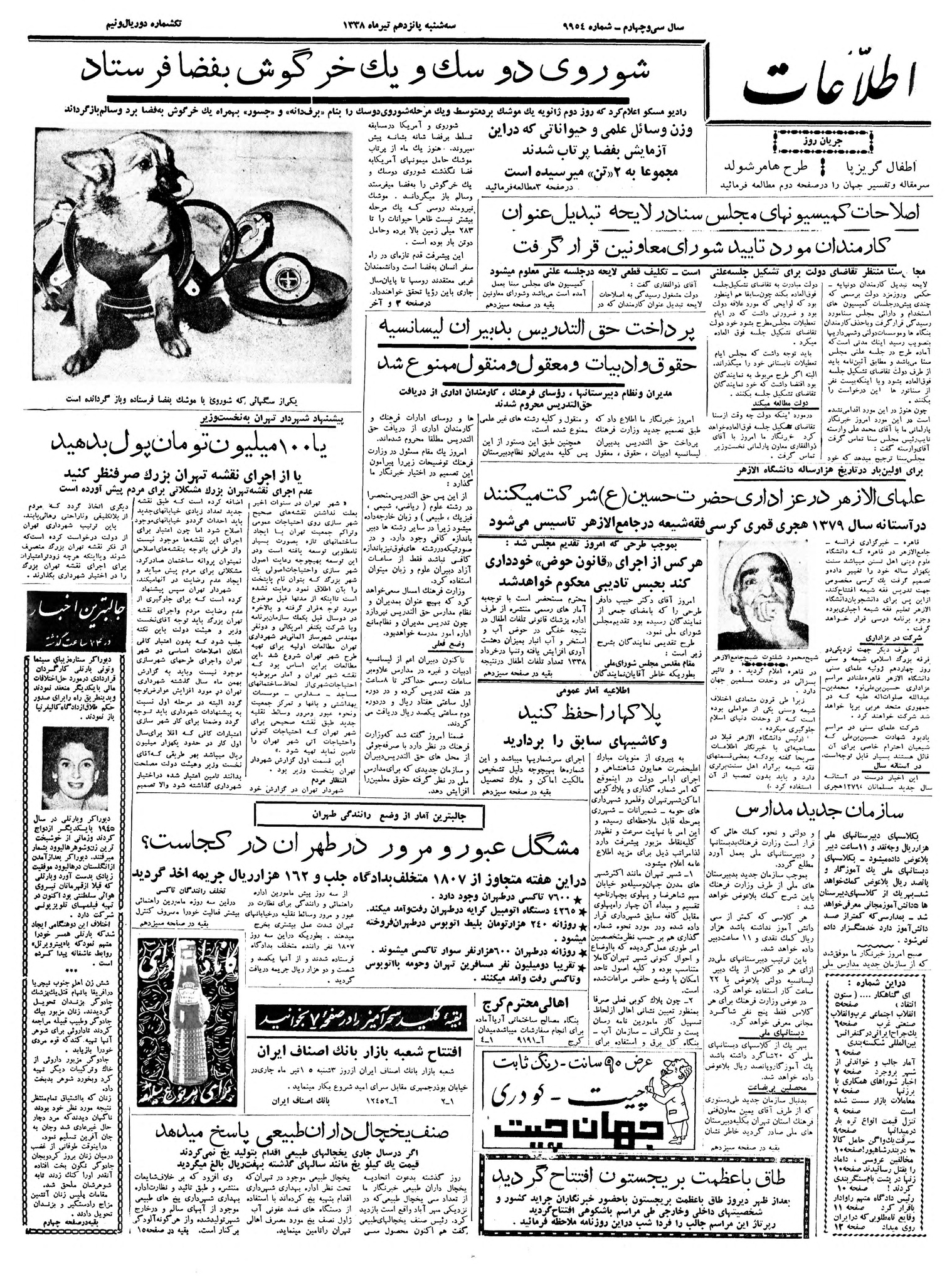 | کنونی | ۱۳ ژوئن ۲۰۲۳، ساعت ۰۴:۵۳ | ۱۰٬۵۸۱×۱۴٬۲۷۰، ۱۶ صفحه (۲۵٫۰۶ مگابایت) | Bijan (گفتگو | مشارکتها) | == خلاصه == رده:روزنامه اطلاعات سال ۱۳۳۸ |