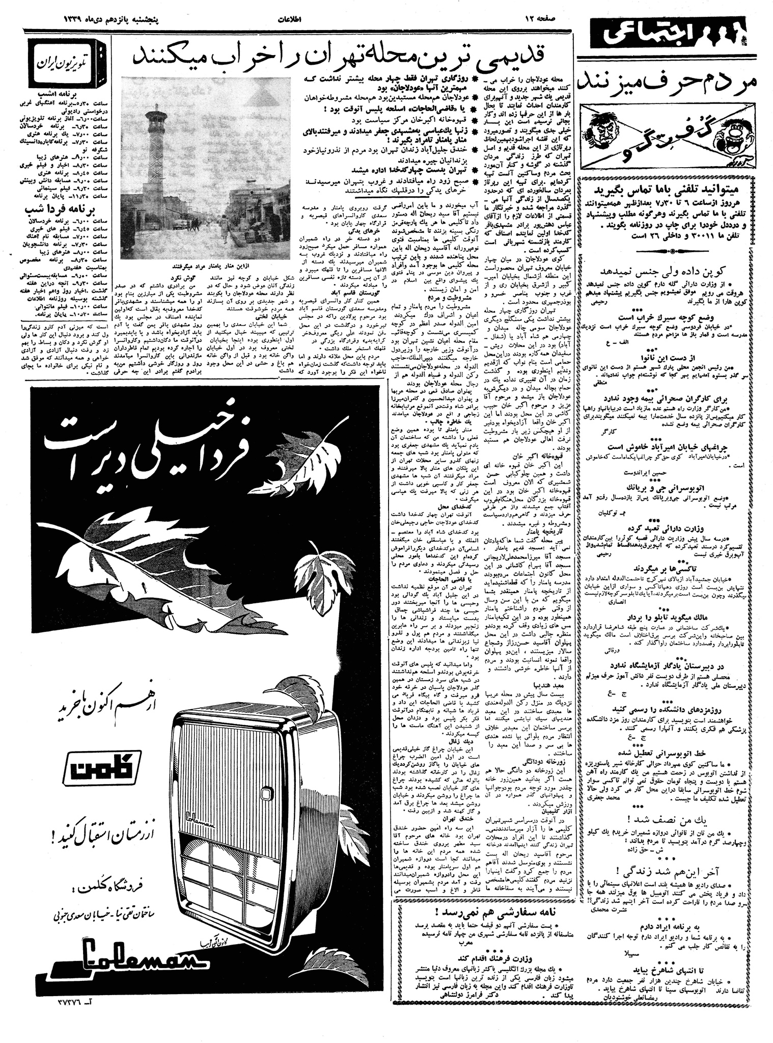 | کنونی | ۶ مهٔ ۲۰۲۳، ساعت ۱۲:۱۵ | ۱۰٬۵۸۱×۱۴٬۲۷۰، ۲۴ صفحه (۱۰۶٫۱۸ مگابایت) | Bijan (گفتگو | مشارکتها) | == خلاصه == {{PD-Iran}} رده:روزنامه اطلاعات سال ۱۳۳۹ |
