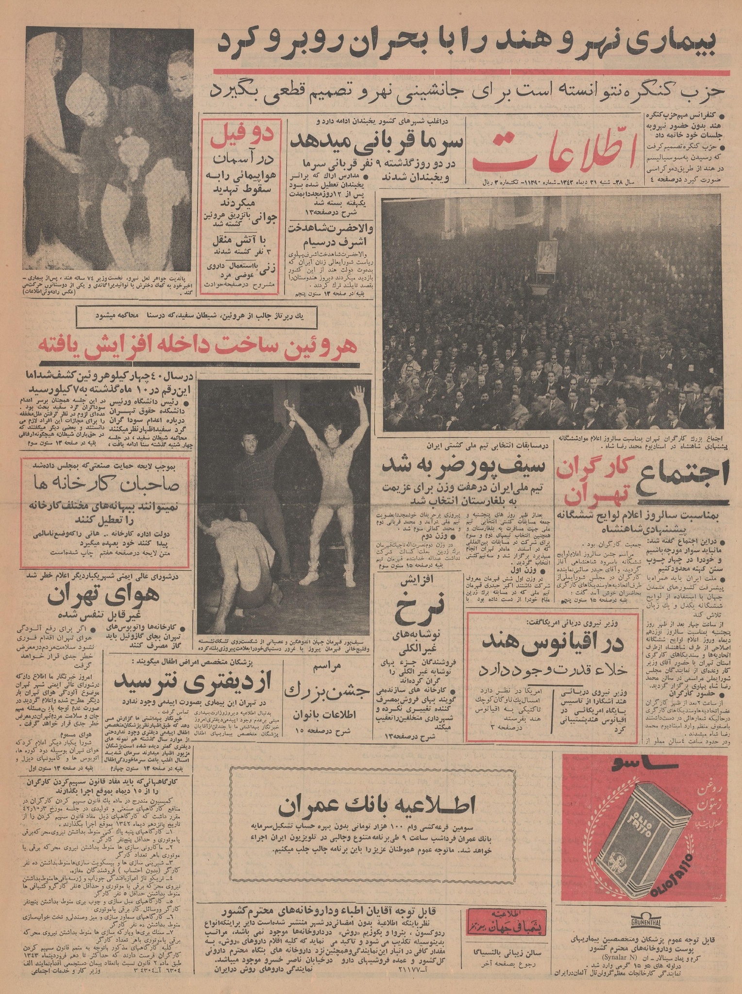 | کنونی | ۲۴ ژانویهٔ ۲۰۱۵، ساعت ۱۶:۴۴ | ۵٬۹۶۸×۸٬۰۰۰، ۱۶ صفحه (۳۶٫۹۷ مگابایت) | Bijan (گفتگو | مشارکتها) | {{PD-Iran}} رده:روزنامه اطلاعات سال ۱۳۴۲ |