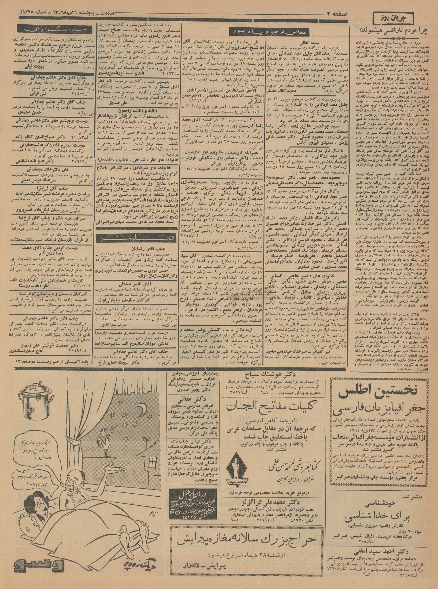 | ۲۴ ژانویهٔ ۲۰۱۵، ساعت ۱۷:۵۴ | ۵٬۹۴۳×۷٬۹۱۸، ۱۶ صفحه (۳۷٫۵۱ مگابایت) | Bijan (گفتگو | مشارکتها) | {{PD-Iran}} رده:روزنامه اطلاعات سال ۱۳۴۲ |