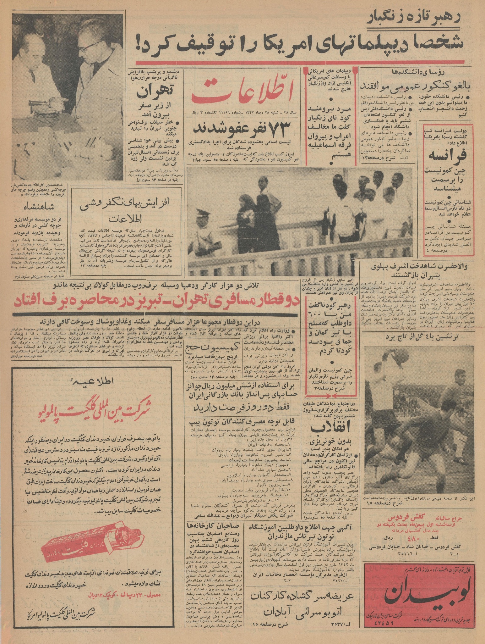 | کنونی | ۲۴ ژانویهٔ ۲۰۱۵، ساعت ۱۸:۱۱ | ۵٬۹۹۷×۷٬۹۵۴، ۱۶ صفحه (۳۷٫۸۲ مگابایت) | Bijan (گفتگو | مشارکتها) | {{PD-Iran}} رده:روزنامه اطلاعات سال ۱۳۴۲ |