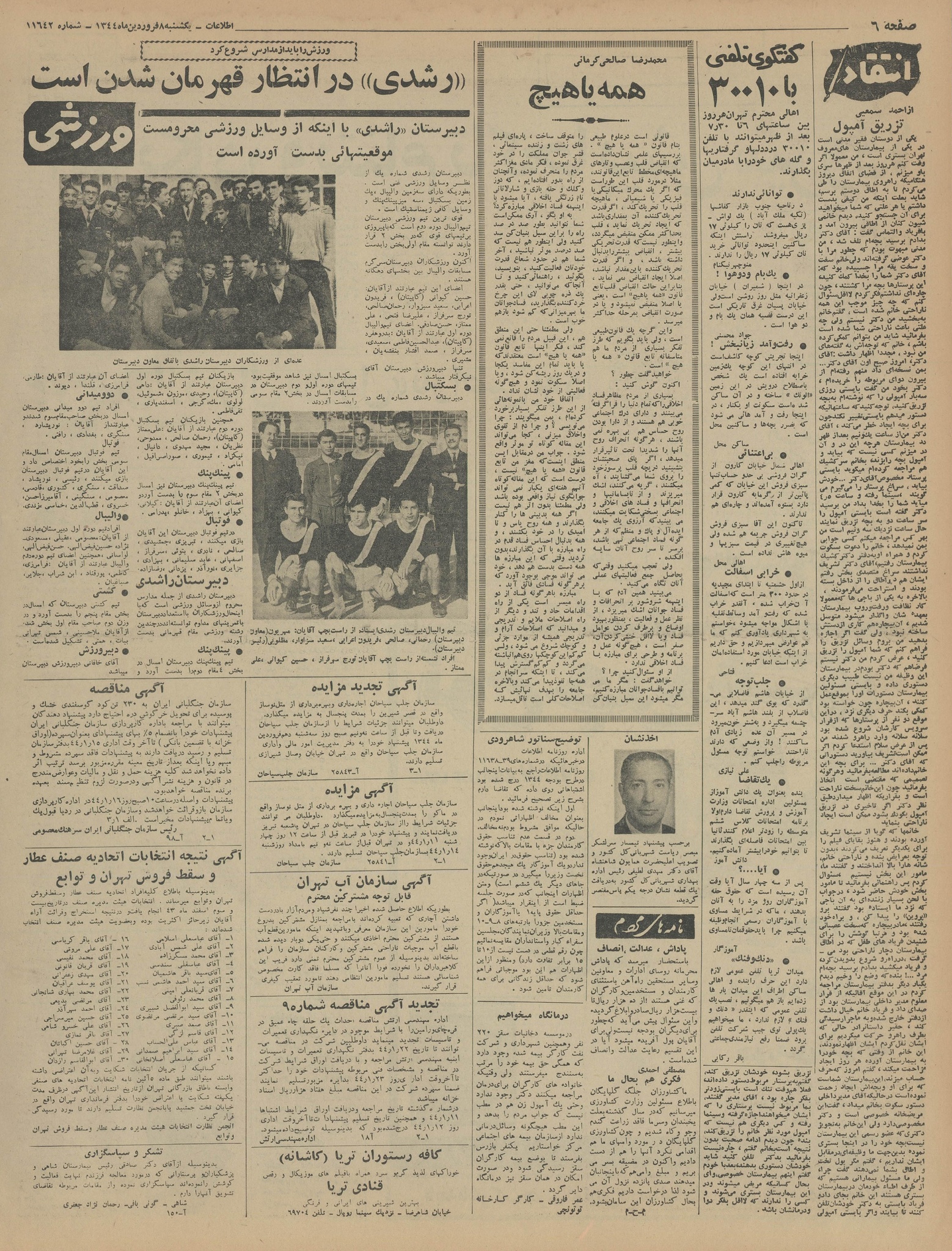 | کنونی | ۲۸ مارس ۲۰۱۵، ساعت ۰۷:۱۱ | ۶٬۰۲۷×۷٬۹۷۹، ۱۶ صفحه (۲۷٫۵۵ مگابایت) | Bijan (گفتگو | مشارکتها) | {{PD-Iran}} رده:روزنامه اطلاعات سال ۱۳۴۴ |