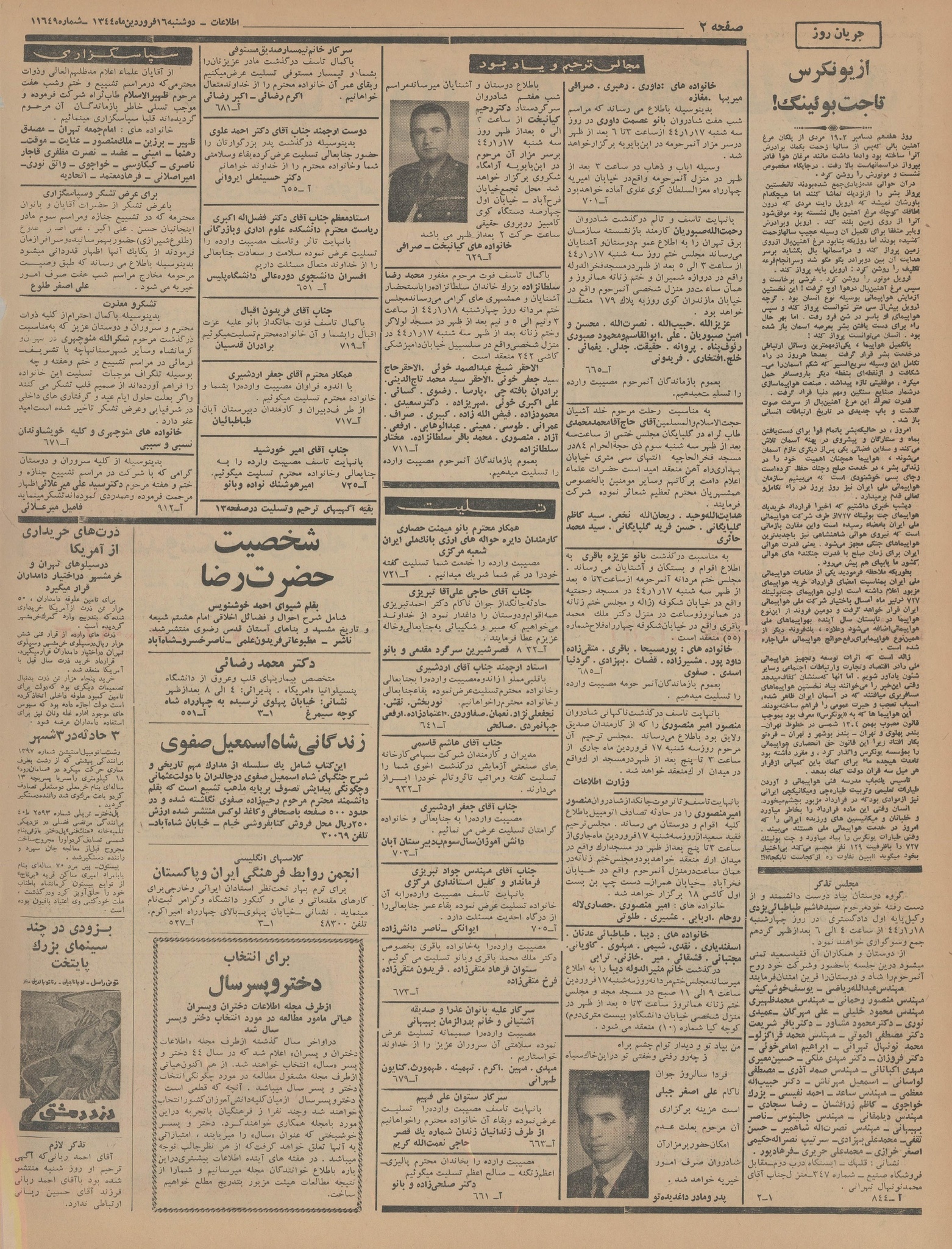 | کنونی | ۵ آوریل ۲۰۱۵، ساعت ۰۵:۴۴ | ۶٬۰۱۶×۷٬۹۲۵، ۱۶ صفحه (۲۷٫۵۱ مگابایت) | Bijan (گفتگو | مشارکتها) | {{PD-Iran}} رده:روزنامه اطلاعات سال ۱۳۴۴ |