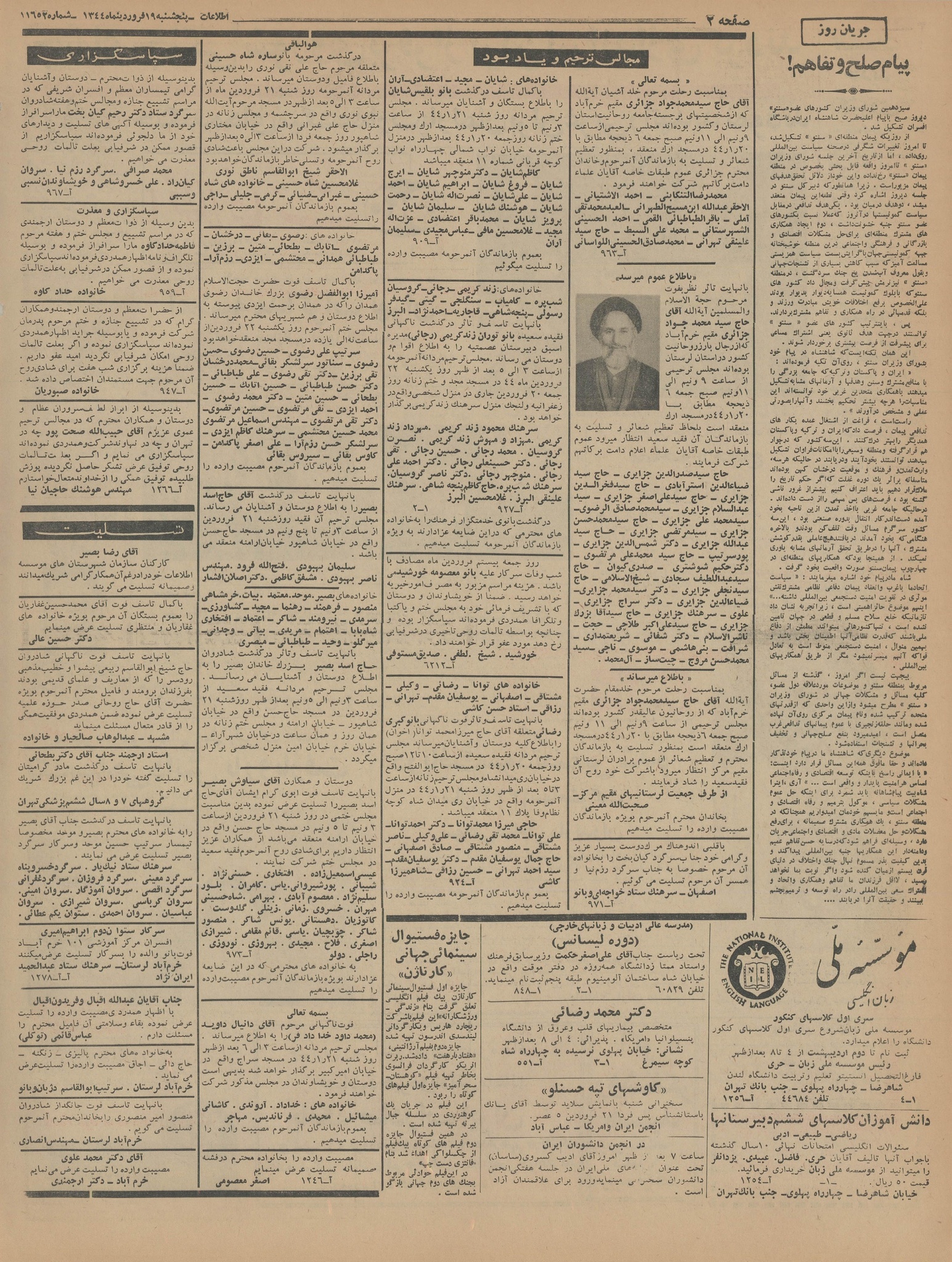 | کنونی | ۸ آوریل ۲۰۱۵، ساعت ۰۴:۱۴ | ۵٬۹۹۵×۸٬۰۱۶، ۲۰ صفحه (۳۳٫۹۲ مگابایت) | Bijan (گفتگو | مشارکتها) | {{PD-Iran}} رده:روزنامه اطلاعات سال ۱۳۴۴ |