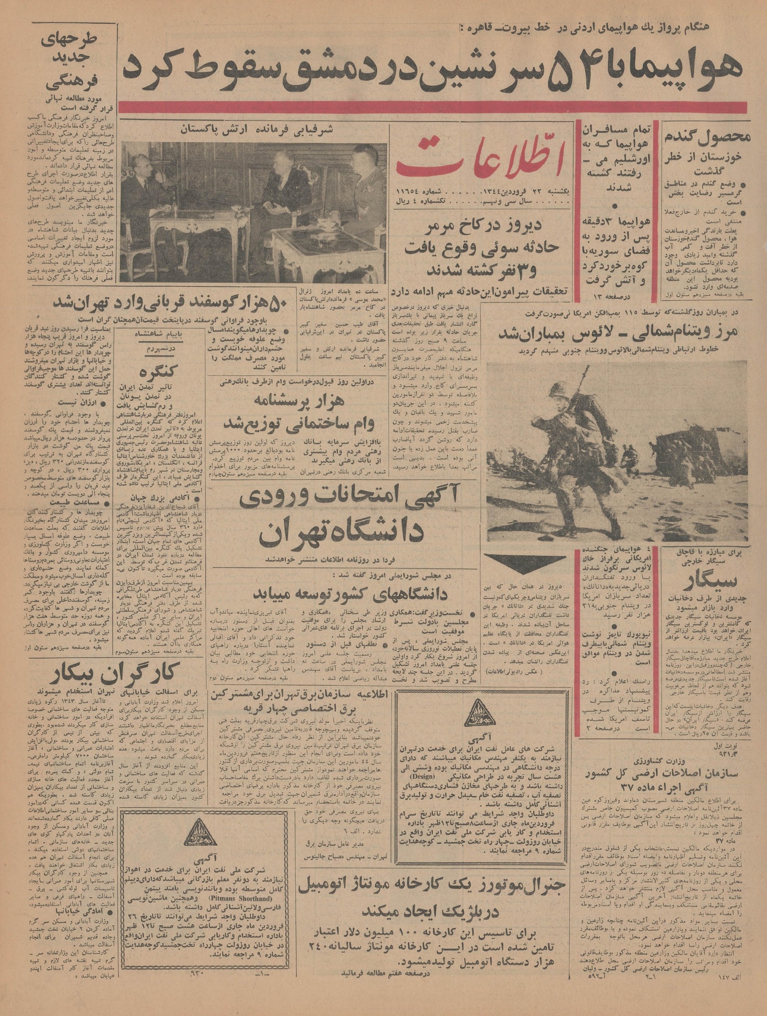 | کنونی | ۱۱ آوریل ۲۰۱۵، ساعت ۰۴:۴۱ | ۶٬۰۵۸×۸٬۰۲۰، ۱۶ صفحه (۲۶٫۷۳ مگابایت) | Bijan (گفتگو | مشارکتها) | {{PD-Iran}} رده:روزنامه اطلاعات سال ۱۳۴۴ |