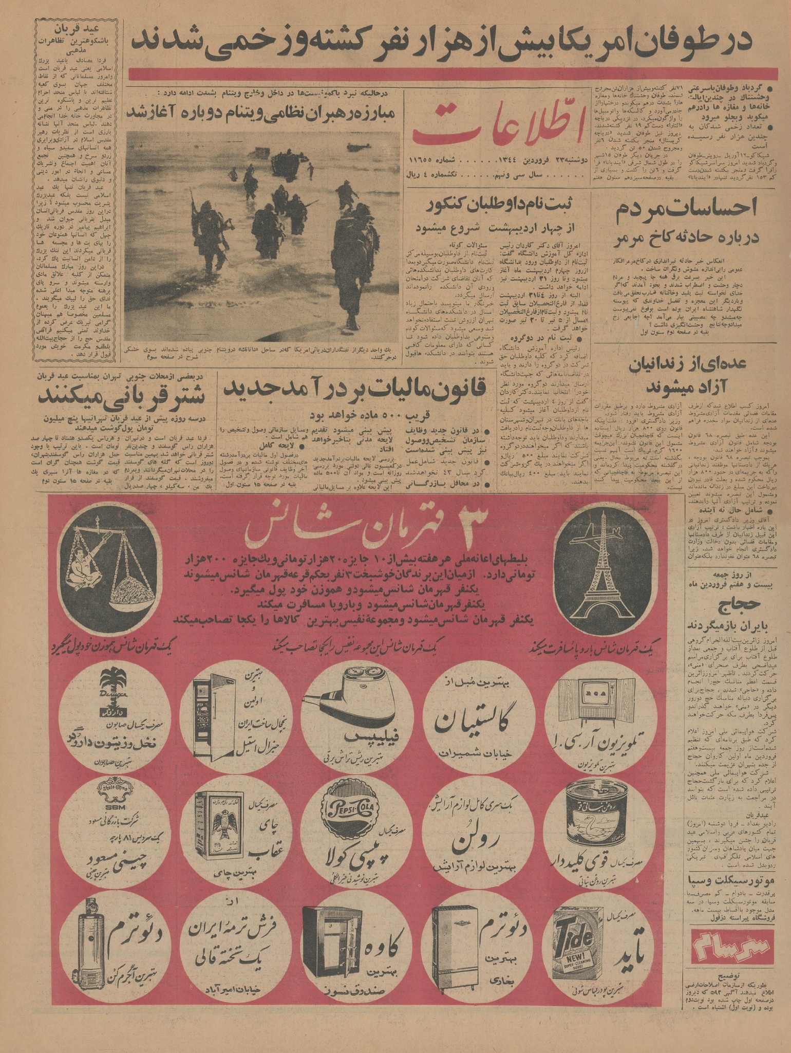 | کنونی | ۱۲ آوریل ۲۰۱۵، ساعت ۰۶:۲۸ | ۶٬۰۵۰×۸٬۰۴۷، ۱۶ صفحه (۶۳٫۰۴ مگابایت) | Bijan (گفتگو | مشارکتها) | {{PD-Iran}} رده:روزنامه اطلاعات سال ۱۳۴۴ |