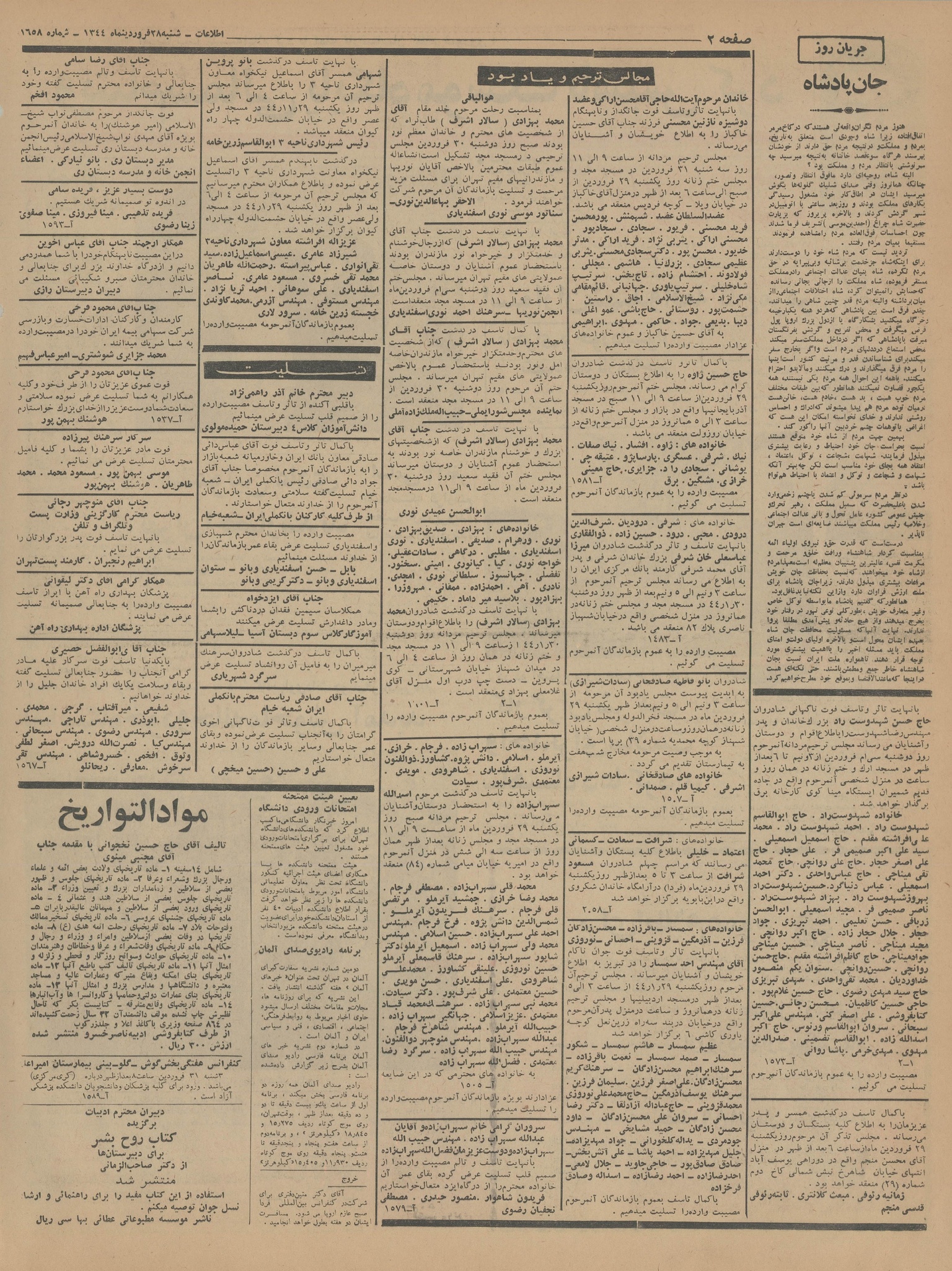 | کنونی | ۱۷ آوریل ۲۰۱۵، ساعت ۰۴:۴۰ | ۲٬۱۸۱×۲٬۸۹۱، ۱۶ صفحه (۲۷٫۳ مگابایت) | Bijan (گفتگو | مشارکتها) | {{PD-Iran}} رده:روزنامه اطلاعات سال ۱۳۴۴ |