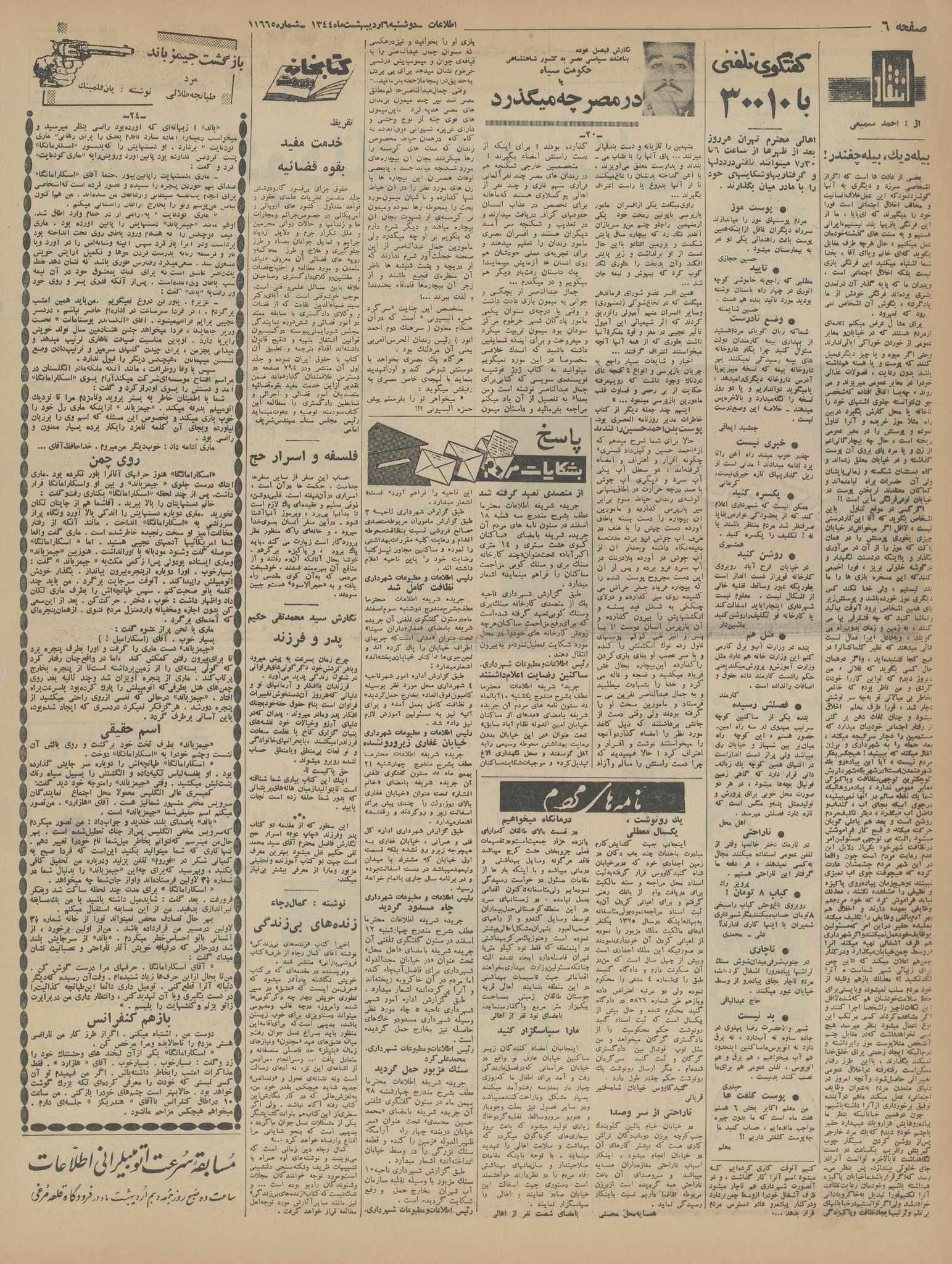 | کنونی | ۲۷ آوریل ۲۰۱۵، ساعت ۰۷:۳۴ | ۶٬۱۴۵×۸٬۰۵۰، ۲۰ صفحه (۳۲٫۳۶ مگابایت) | Bijan (گفتگو | مشارکتها) | {{PD-Iran}} رده:روزنامه اطلاعات سال ۱۳۴۴ |