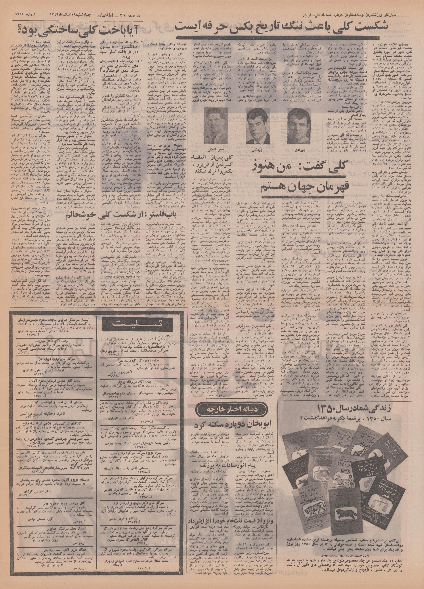 | کنونی | ۴ سپتامبر ۲۰۱۵، ساعت ۱۱:۳۷ | ۶٬۷۶۴×۹٬۴۲۷، ۲۴ صفحه (۵۱٫۷۵ مگابایت) | Bijan (گفتگو | مشارکتها) | {{PD-Iran}} رده:روزنامه اطلاعات سال ۱۳۴۹ |