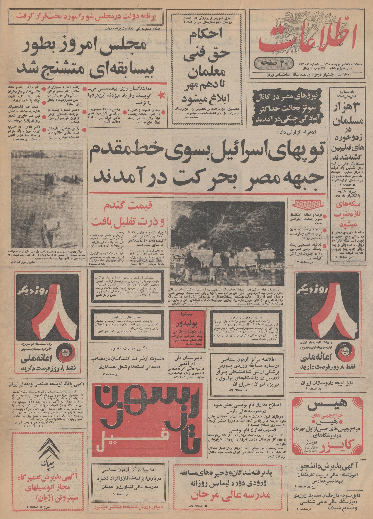 | کنونی | ۷ سپتامبر ۲۰۱۵، ساعت ۱۷:۴۸ | ۶٬۷۱۰×۹٬۳۵۰، ۲۰ صفحه (۳۸٫۸۸ مگابایت) | Bijan (گفتگو | مشارکتها) | {{PD-Iran}} رده:روزنامه اطلاعات سال ۱۳۵۰ |