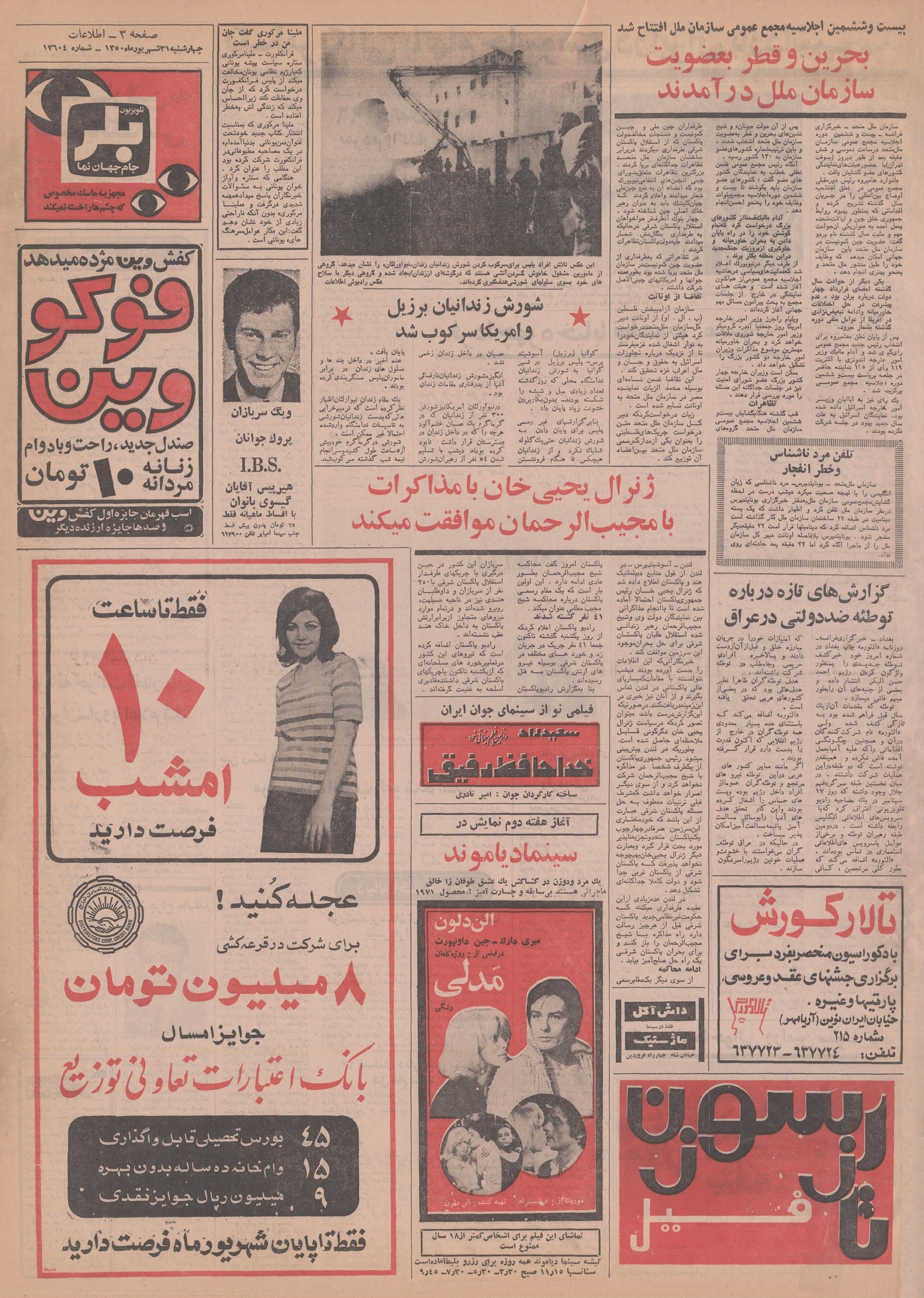 | ۲۰ اکتبر ۲۰۱۴، ساعت ۲۱:۴۹ | ۲٬۴۳۷×۳٬۴۸۹، ۱۵ صفحه (۳۹٫۴۶ مگابایت) | Bijan (گفتگو | مشارکتها) | {{PD-Iran}} رده:روزنامه اطلاعات سال ۱۳۵۰ |