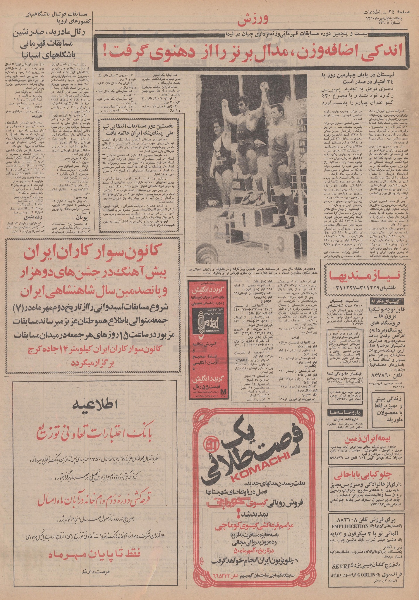 | ۲۱ اکتبر ۲۰۱۴، ساعت ۰۷:۳۶ | ۲٬۴۵۰×۳٬۵۲۷، ۱۳ صفحه (۳۲٫۹۲ مگابایت) | Bijan (گفتگو | مشارکتها) | {{PD-Iran}} رده:روزنامه اطلاعات سال ۱۳۵۰ |