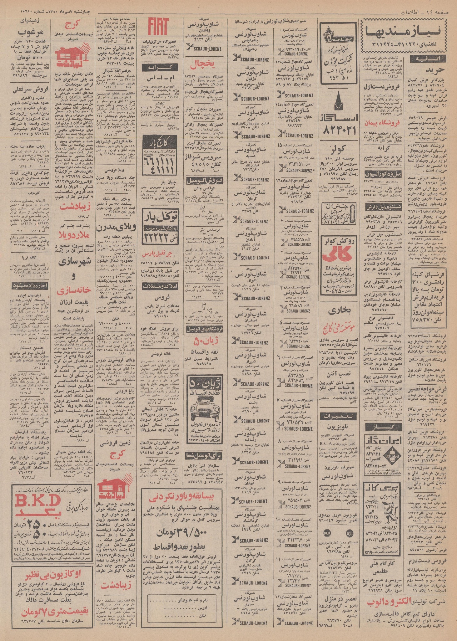 | ۲۱ اکتبر ۲۰۱۴، ساعت ۰۹:۲۸ | ۲٬۴۳۳×۳٬۵۲۷، ۱۳ صفحه (۳۲٫۸۵ مگابایت) | Bijan (گفتگو | مشارکتها) | {{PD-Iran}} رده:روزنامه اطلاعات سال ۱۳۵۰ |