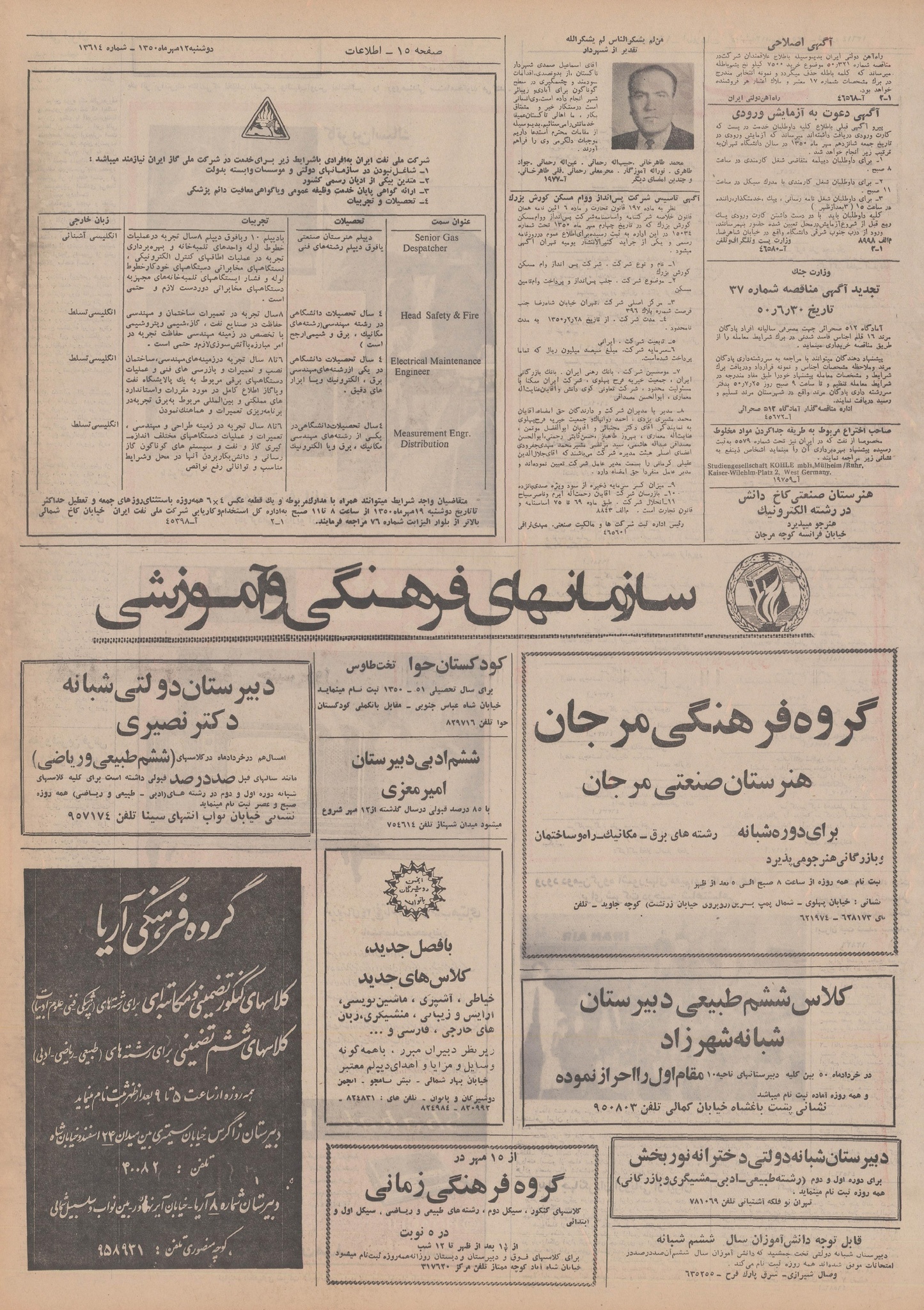 | ۲۱ اکتبر ۲۰۱۴، ساعت ۱۳:۵۲ | ۲٬۴۴۳×۳٬۵۲۷، ۱۵ صفحه (۳۸٫۱۸ مگابایت) | Bijan (گفتگو | مشارکتها) | {{PD-Iran}} رده:روزنامه اطلاعات سال ۱۳۵۰ |