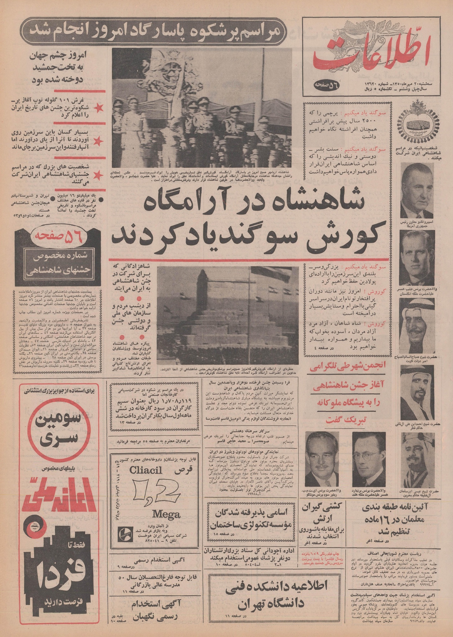 | ۱۸ اکتبر ۲۰۱۴، ساعت ۰۰:۲۷ | ۲٬۴۵۶×۳٬۵۲۷، ۲۹ صفحه (۳۴۳٫۰۳ مگابایت) | Bijan (گفتگو | مشارکتها) | {{PD-Iran}} رده:روزنامه اطلاعات سال ۱۳۵۰ |