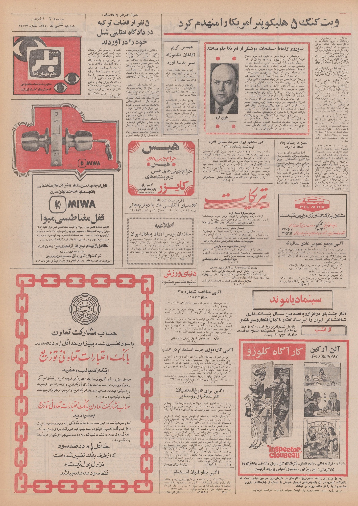 | ۲۰ اکتبر ۲۰۱۴، ساعت ۱۶:۳۹ | ۲٬۴۳۱×۳٬۵۲۷، ۴۳ صفحه (۱۱۲٫۱۲ مگابایت) | Bijan (گفتگو | مشارکتها) | {{PD-Iran}} رده:روزنامه اطلاعات سال ۱۳۵۰ |