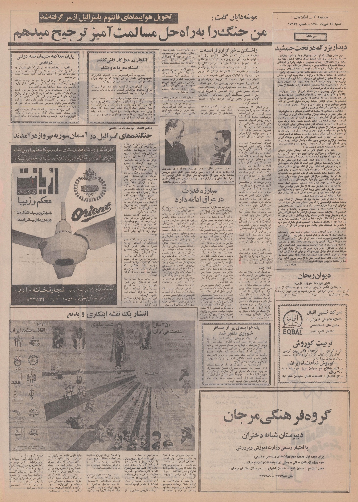 | ۲۰ اکتبر ۲۰۱۴، ساعت ۱۸:۳۵ | ۲٬۴۴۳×۳٬۵۲۷، ۳۹ صفحه (۹۹٫۴ مگابایت) | Bijan (گفتگو | مشارکتها) | {{PD-Iran}} رده:روزنامه اطلاعات سال ۱۳۵۰ |