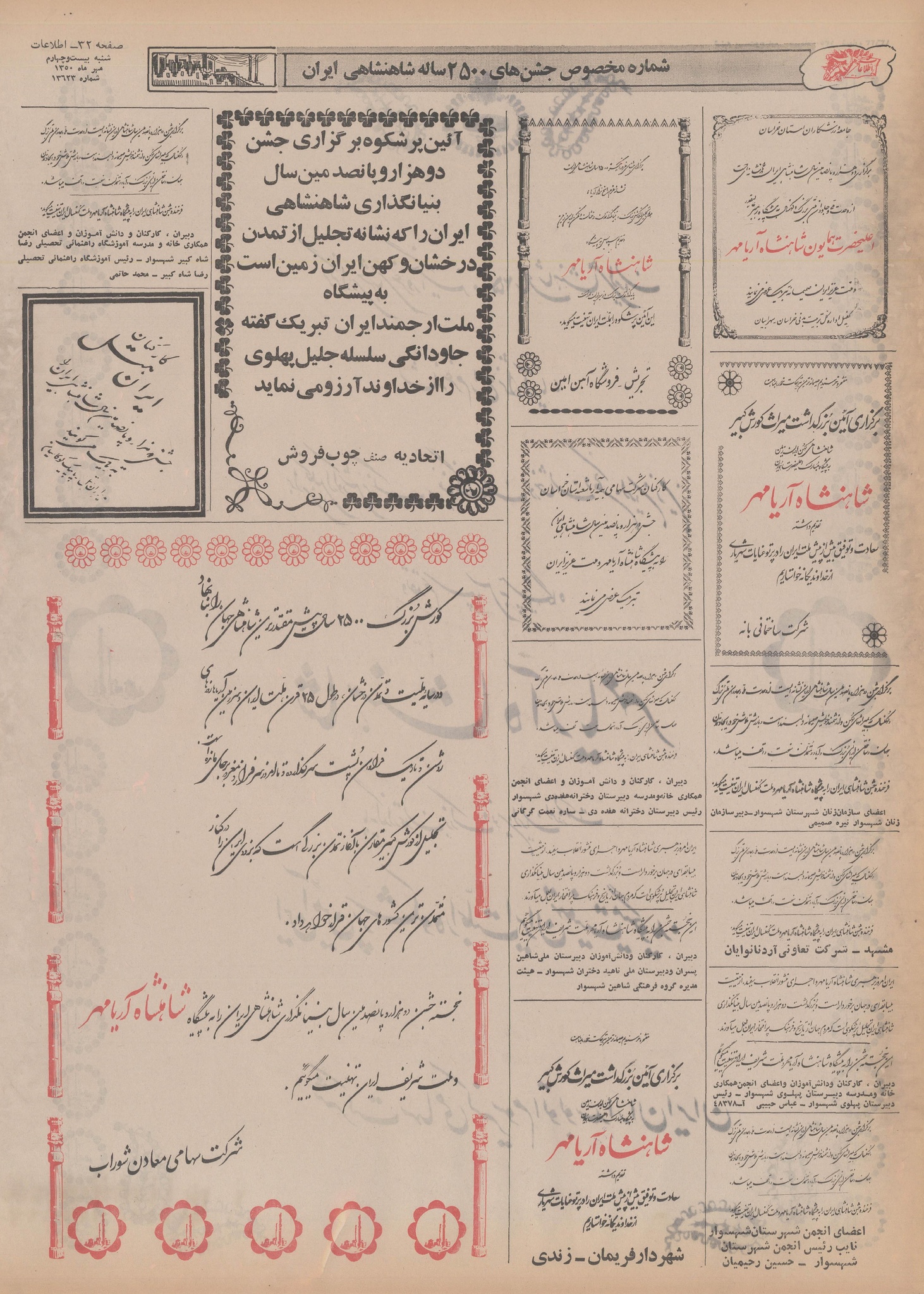 | ۲۰ اکتبر ۲۰۱۴، ساعت ۱۸:۳۵ | ۲٬۴۴۳×۳٬۵۲۷، ۳۹ صفحه (۹۹٫۴ مگابایت) | Bijan (گفتگو | مشارکتها) | {{PD-Iran}} رده:روزنامه اطلاعات سال ۱۳۵۰ |