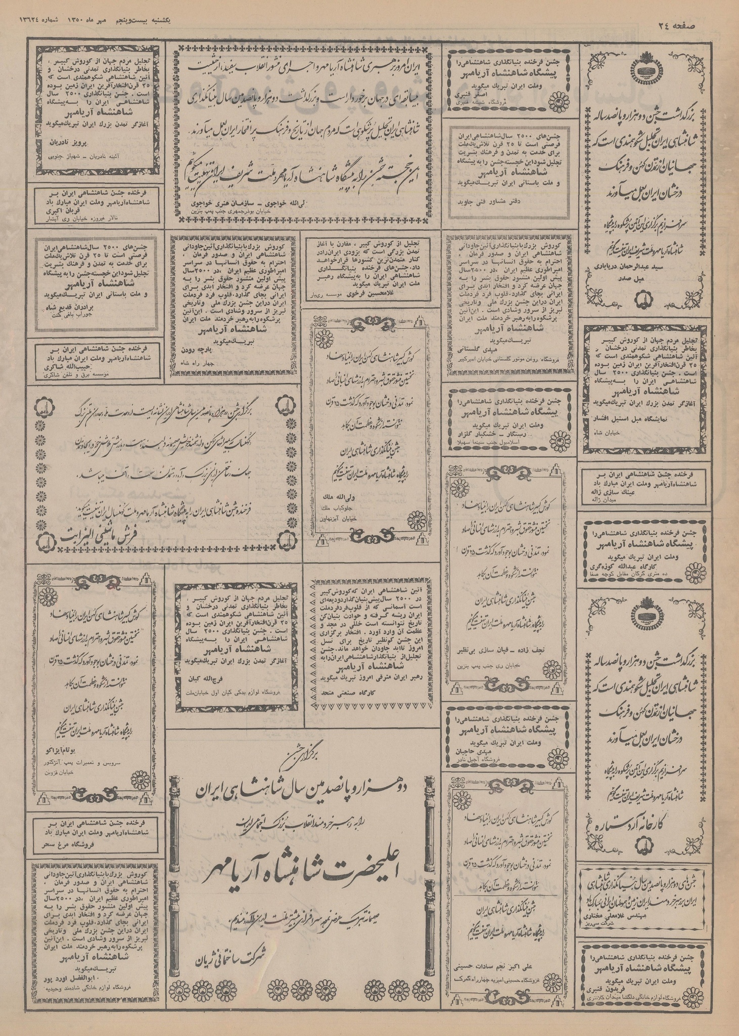 | ۲۰ اکتبر ۲۰۱۴، ساعت ۱۹:۱۹ | ۲٬۴۳۳×۳٬۵۲۷، ۲۵ صفحه (۶۴٫۶۵ مگابایت) | Bijan (گفتگو | مشارکتها) | {{PD-Iran}} رده:روزنامه اطلاعات سال ۱۳۵۰ |