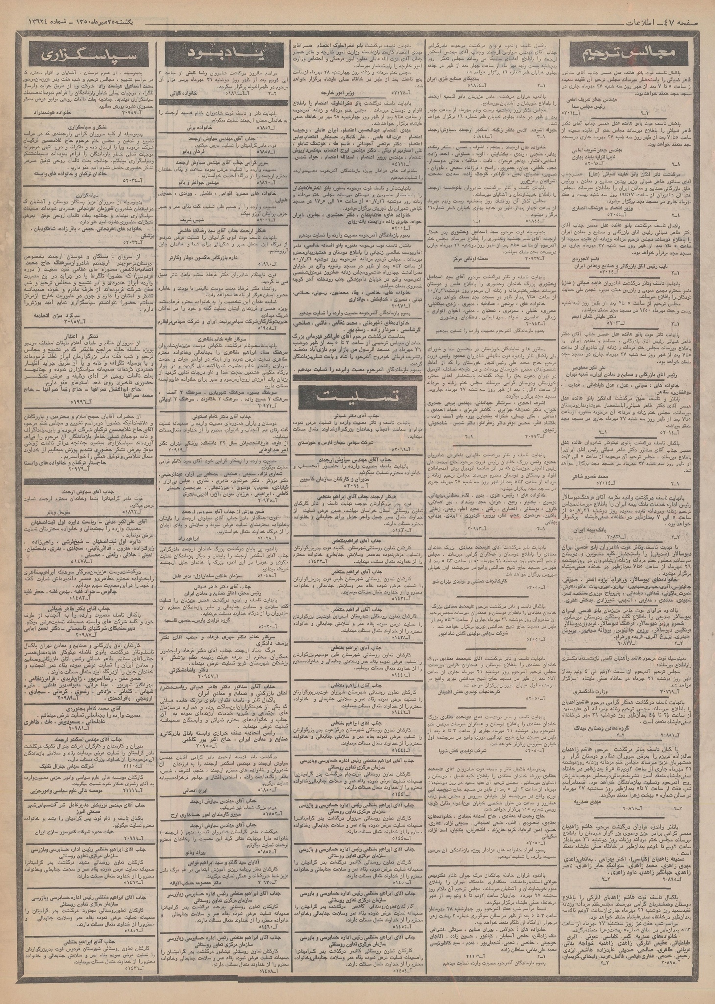 | ۲۰ اکتبر ۲۰۱۴، ساعت ۱۹:۱۹ | ۲٬۴۳۳×۳٬۵۲۷، ۲۵ صفحه (۶۴٫۶۵ مگابایت) | Bijan (گفتگو | مشارکتها) | {{PD-Iran}} رده:روزنامه اطلاعات سال ۱۳۵۰ |