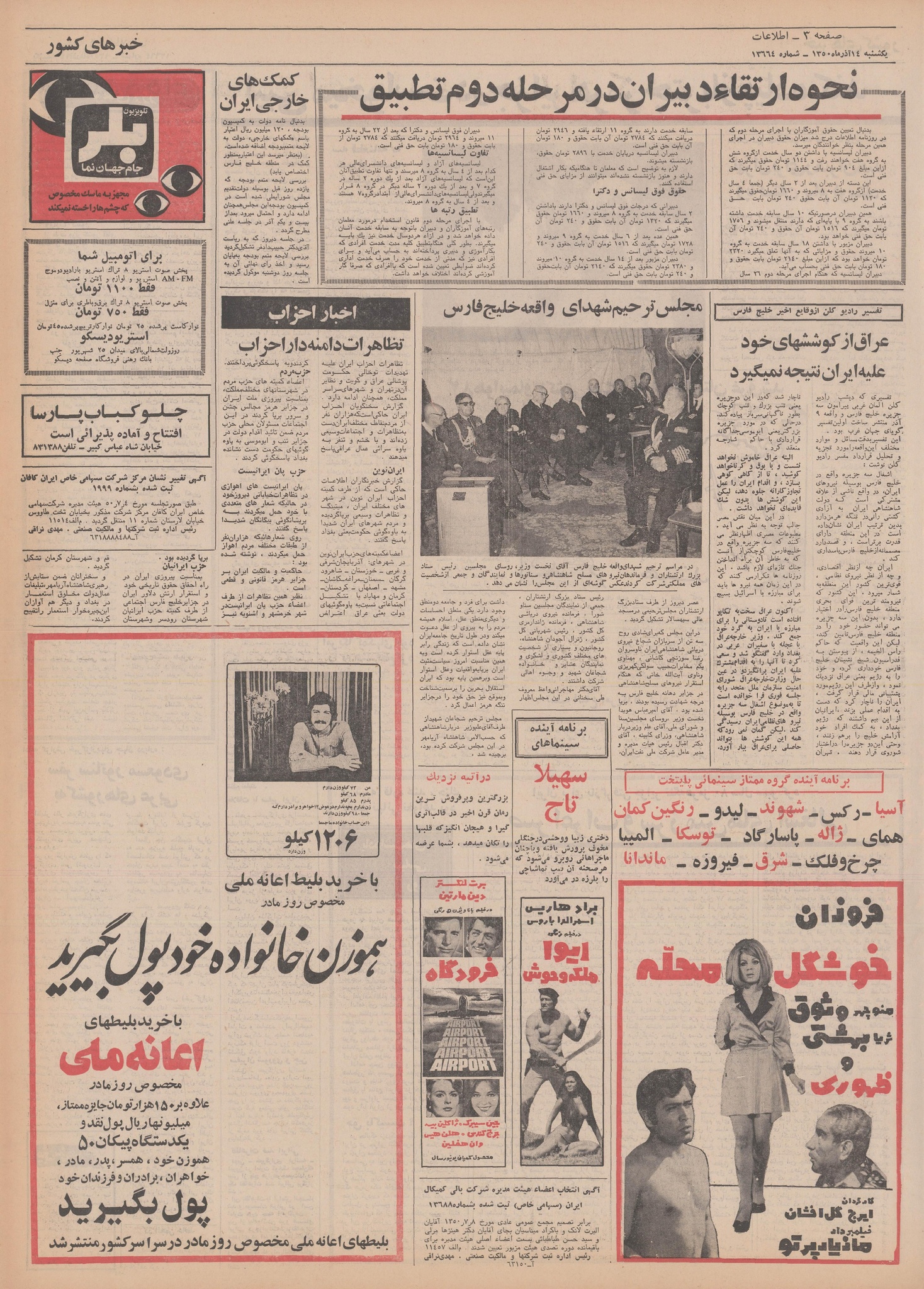 | کنونی | ۸ سپتامبر ۲۰۱۵، ساعت ۱۸:۵۷ | ۶٬۷۵۰×۹٬۴۸۱، ۲۰ صفحه (۴۲٫۵ مگابایت) | Bijan (گفتگو | مشارکتها) | {{PD-Iran}} رده:روزنامه اطلاعات سال ۱۳۵۰ |