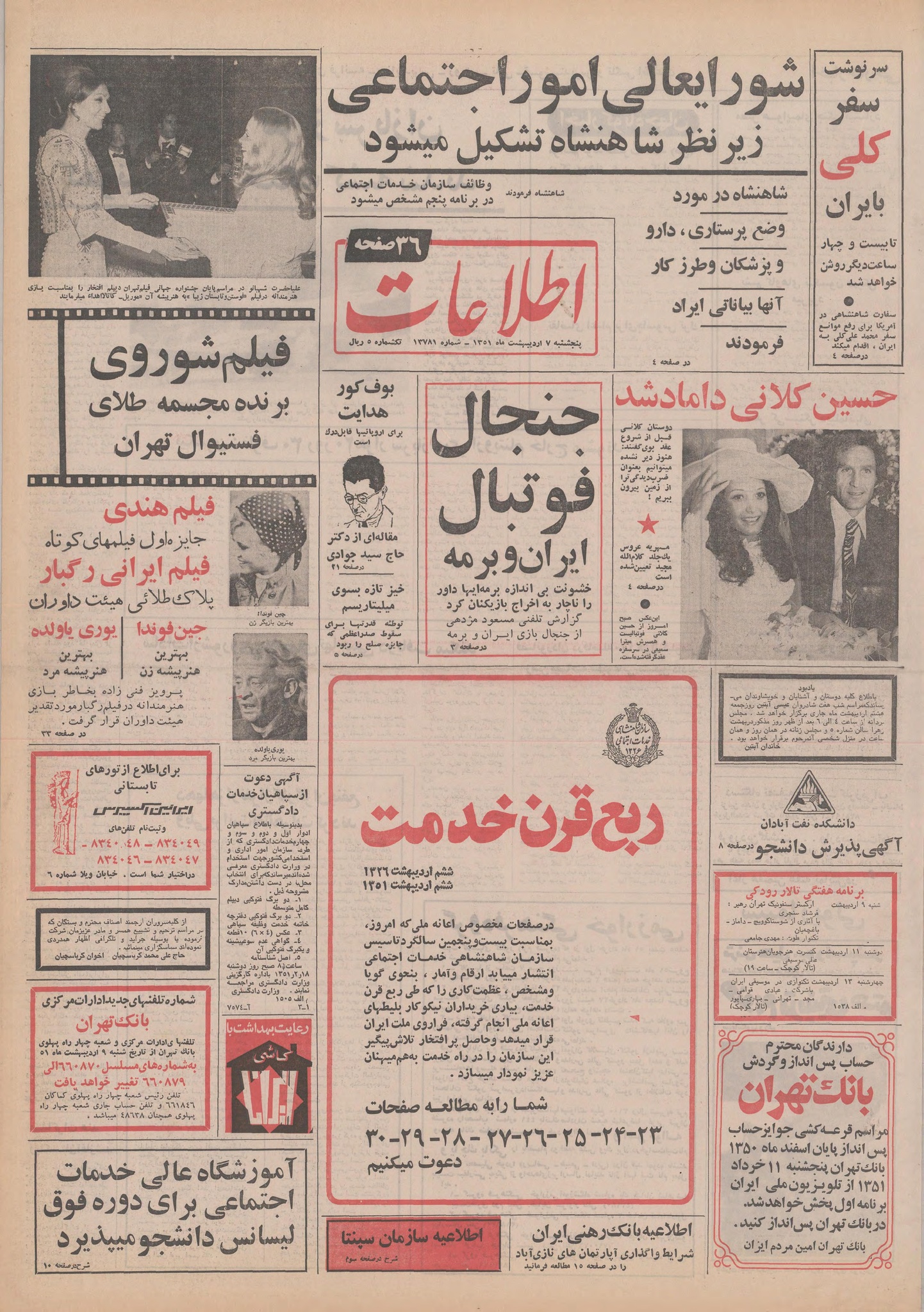 | کنونی | ۱۴ فوریهٔ ۲۰۱۷، ساعت ۰۹:۳۹ | ۶٬۸۴۱×۹٬۷۱۴، ۳۶ صفحه (۵۷٫۲۹ مگابایت) | Bijan (گفتگو | مشارکتها) | {{PD-Iran}} رده:روزنامه اطلاعات سال ۱۳۵۱ |