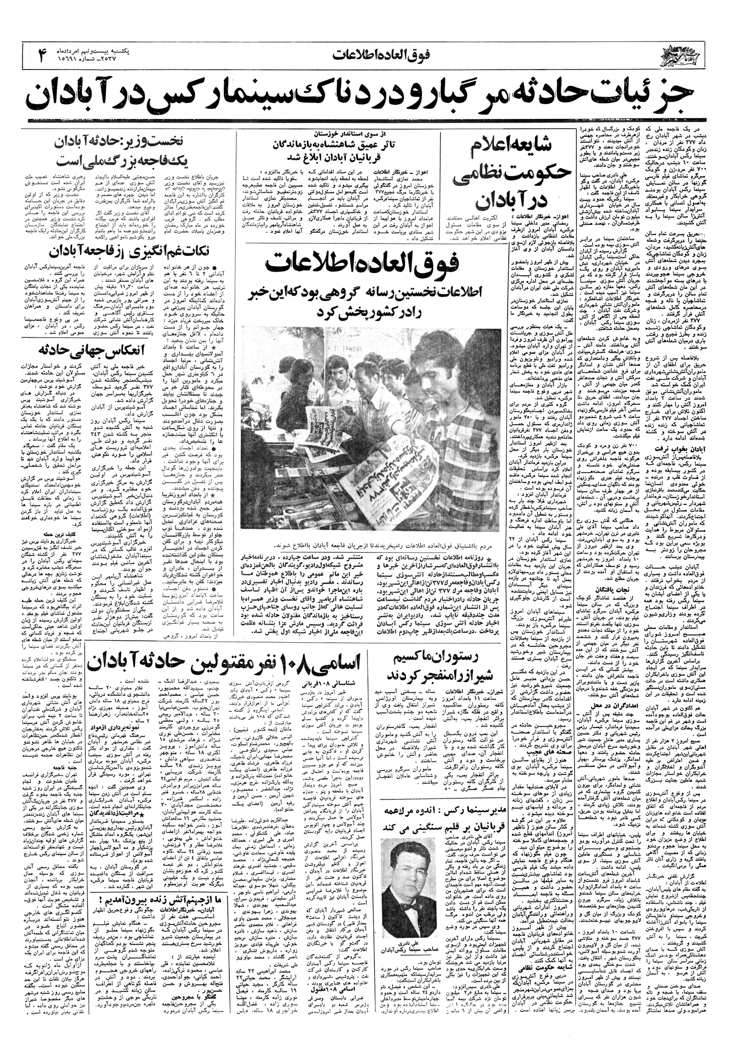 - روزنامه اطلاعات روز یکشنبه ۲۹ امرداد ماه ۲۵۳۷ شاهنشاهی ویژه آتش زدن سینما رکس آبادان