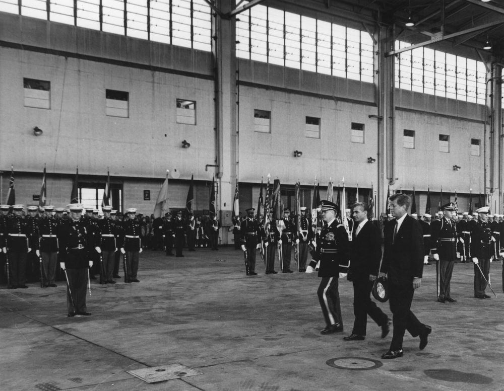 | کنونی | ۱۲ نوامبر ۲۰۱۲، ساعت ۱۹:۴۰ | ۱٬۰۰۰ در ۷۷۷ (۱۴۶ کیلوبایت) | Bijan (گفتگو | مشارکتها) | == Summary == Description: President John F. Kennedy and the Shah of Iran, Mohammad Reza Pahlavi, Inspect Troops During Arrival Ceremonies Source: US Department of State; Office of the Historan; http://www.jfklibrary.org/Asset-Viewer/Archives/JFKWHP-A... |
