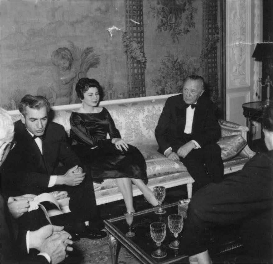 Description: State Visit German Bundeskanzler Konrad Adenauer, Shahinshah Iran Mohammad Reza Pahlavi and Soraya in Tehran, 1957.