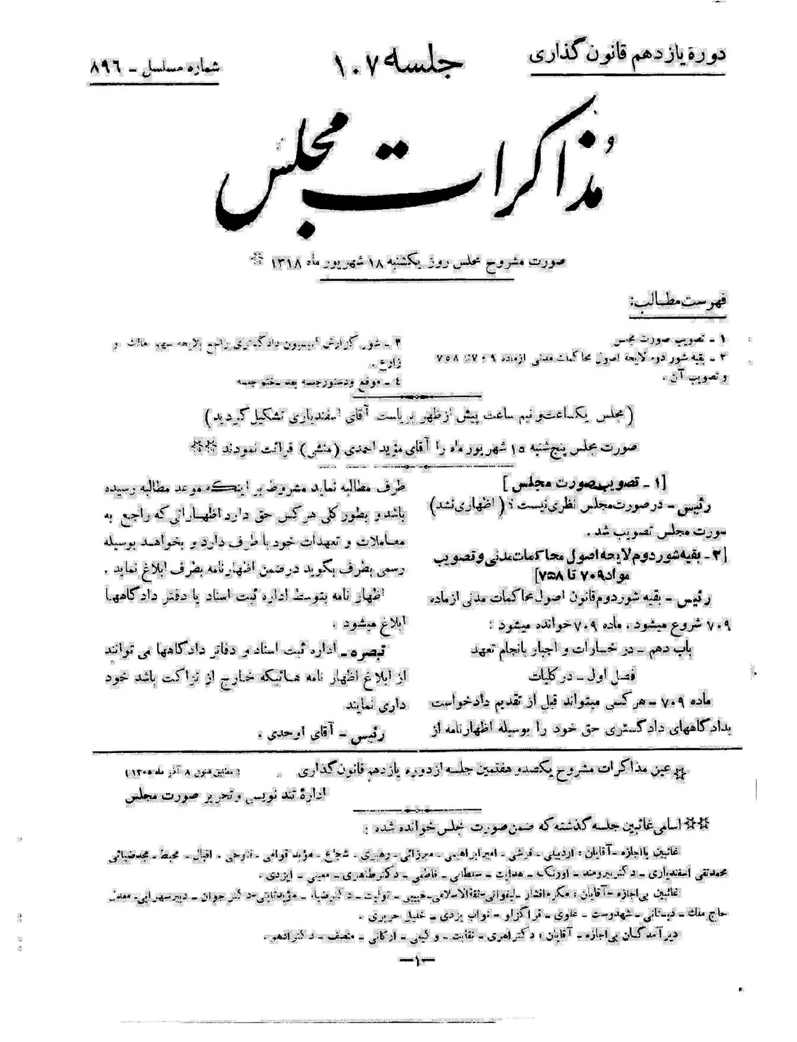 | کنونی | ۴ اکتبر ۲۰۱۳، ساعت ۱۴:۰۲ | ۲٬۶۸۳×۳٬۵۵۰، ۹ صفحه (۶٫۶۱ مگابایت) | Bijan (گفتگو | مشارکتها) | {{PD-Iran}} رده:مجلس شورای ملی مذاکرات دوره قانونگذاری یازدهم - ۲۰ شهریور ۱۳۱۶ تا ۲۷ شهریور ۱۳۱۸ |