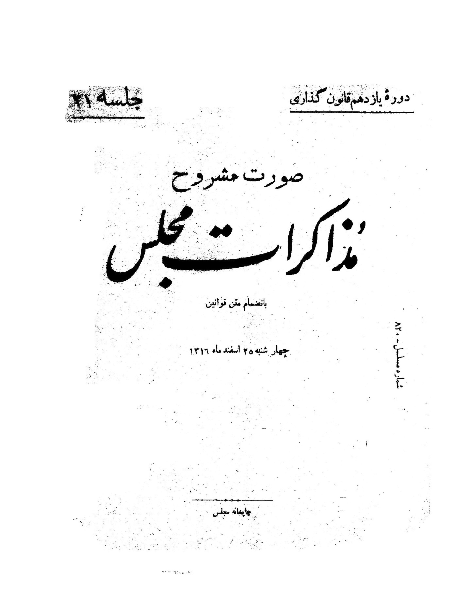 | کنونی | ۴ اکتبر ۲۰۱۳، ساعت ۰۹:۴۶ | ۲٬۹۰۰×۳٬۸۵۶، ۱۵ صفحه (۹٫۷۴ مگابایت) | Bijan (گفتگو | مشارکتها) | {{PD-Iran}} رده:مجلس شورای ملی قوانین دوره قانونگذاری یازدهم - ۲۰ شهریور ۱۳۱۶ تا ۲۷ شهریور ۱۳۱۸ |