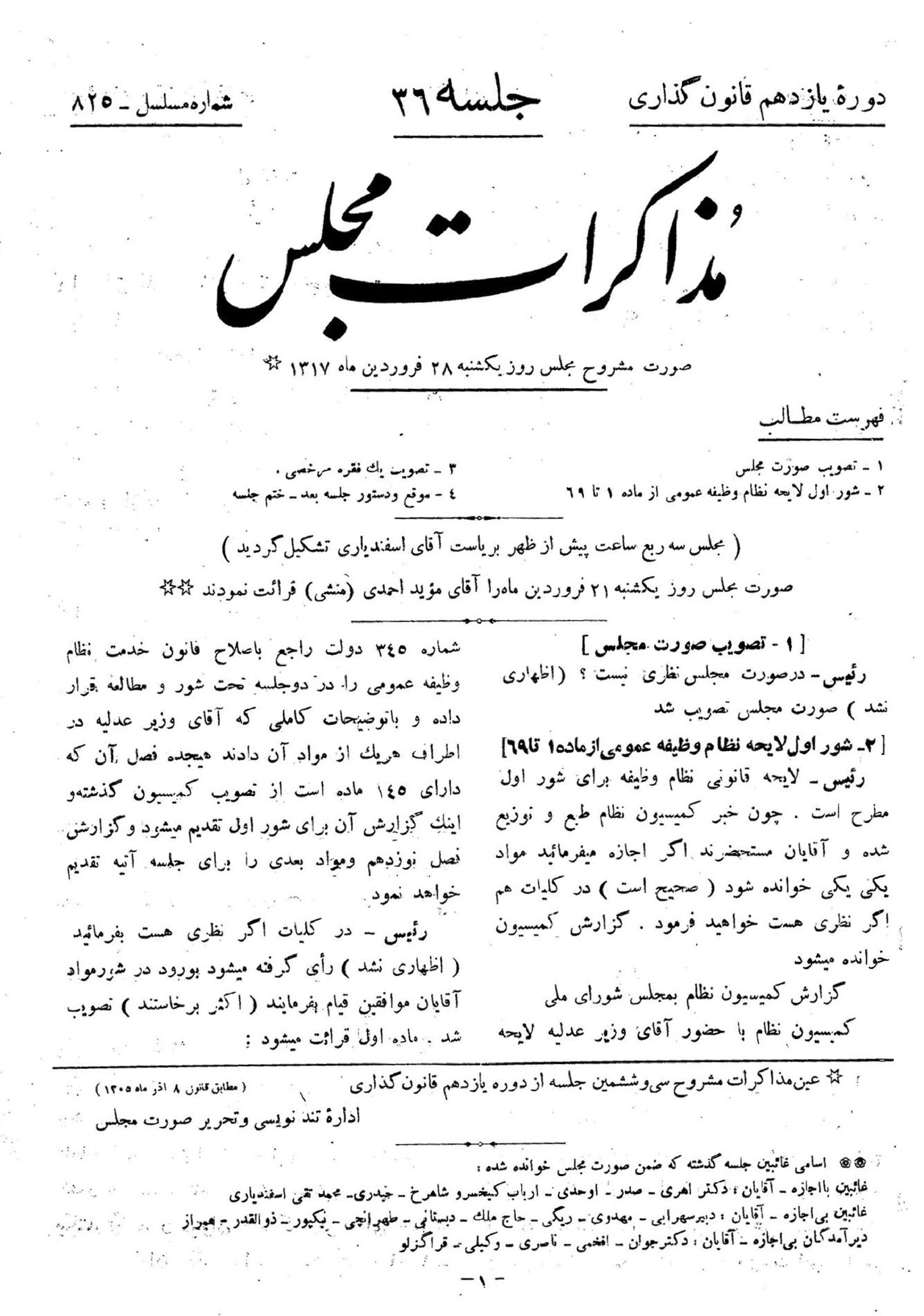 | کنونی | ۴ اکتبر ۲۰۱۳، ساعت ۱۰:۲۷ | ۲٬۷۸۱×۳٬۹۶۰، ۶ صفحه (۳٫۷۲ مگابایت) | Bijan (گفتگو | مشارکتها) | {{PD-Iran}} رده:مجلس شورای ملی مذاکرات دوره قانونگذاری یازدهم - ۲۰ شهریور ۱۳۱۶ تا ۲۷ شهریور ۱۳۱۸ |