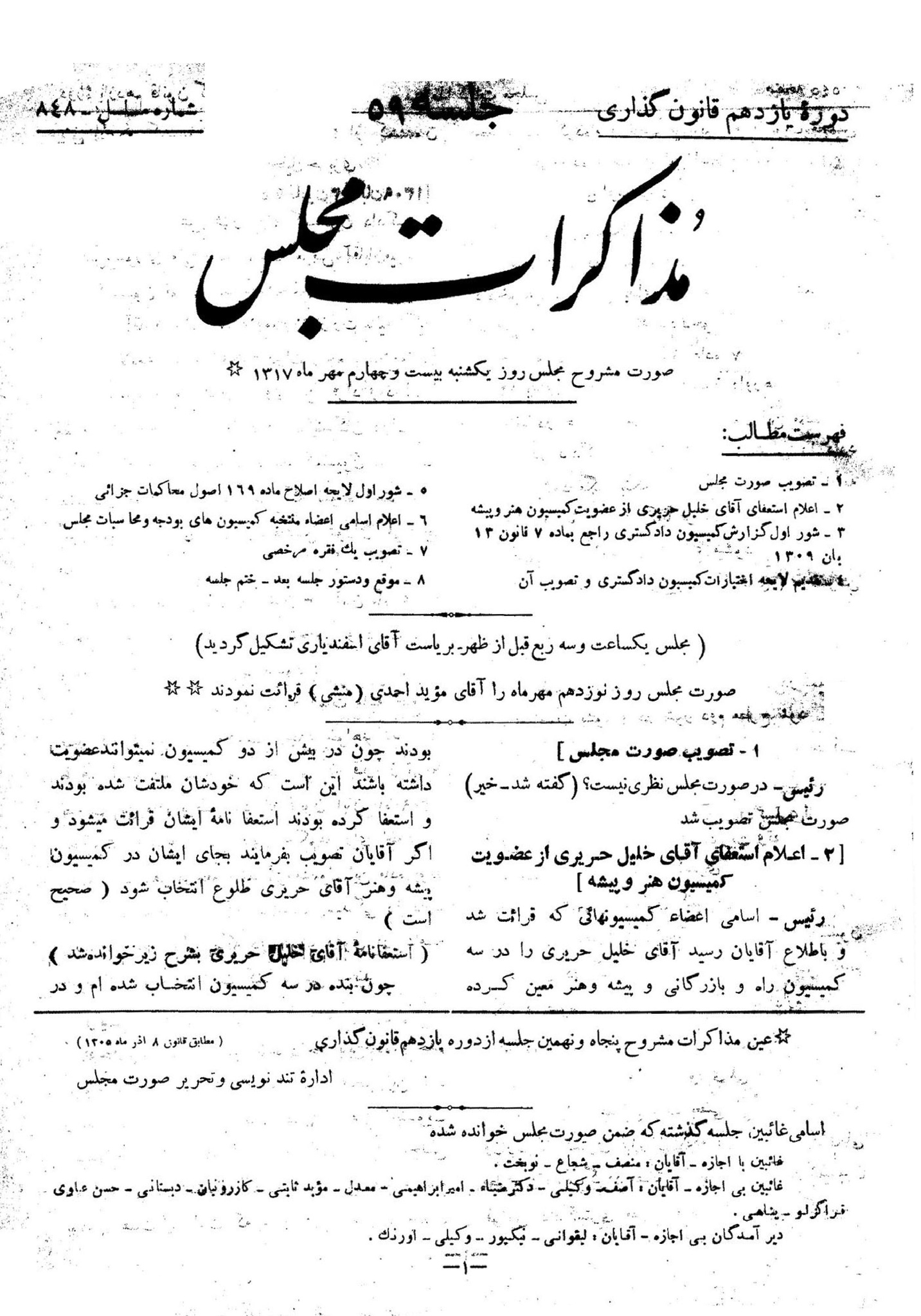 | کنونی | ۴ اکتبر ۲۰۱۳، ساعت ۱۱:۰۶ | ۲٬۹۲۵×۴٬۱۷۹، ۴ صفحه (۳٫۳۷ مگابایت) | Bijan (گفتگو | مشارکتها) | {{PD-Iran}} رده:مجلس شورای ملی مذاکرات دوره قانونگذاری یازدهم - ۲۰ شهریور ۱۳۱۶ تا ۲۷ شهریور ۱۳۱۸ |