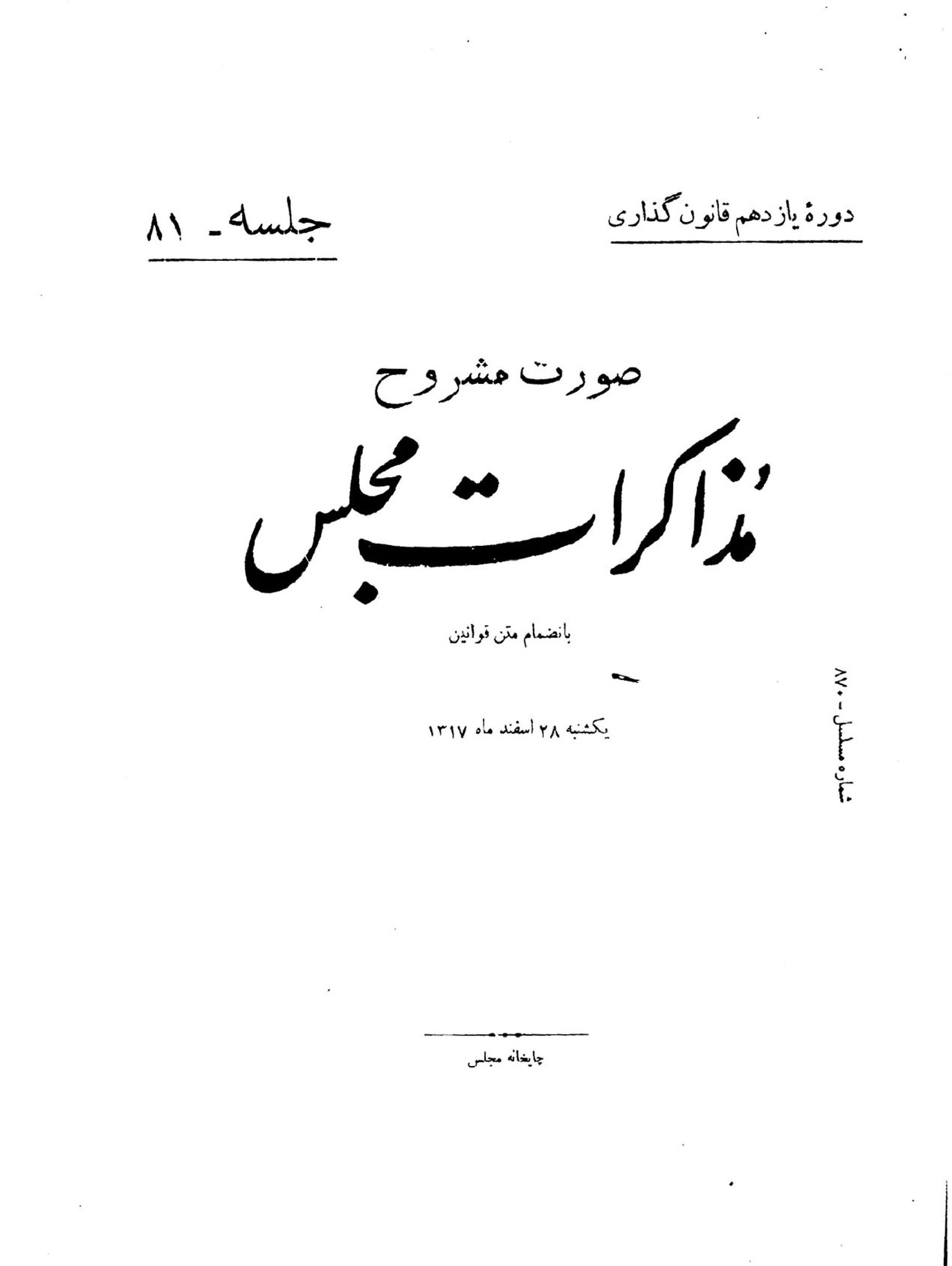 | کنونی | ۴ اکتبر ۲۰۱۳، ساعت ۱۲:۵۶ | ۲٬۶۴۵×۳٬۵۱۸، ۸ صفحه (۴٫۴۸ مگابایت) | Bijan (گفتگو | مشارکتها) | {{PD-Iran}} رده:مجلس شورای ملی مذاکرات دوره قانونگذاری یازدهم - ۲۰ شهریور ۱۳۱۶ تا ۲۷ شهریور ۱۳۱۸ |