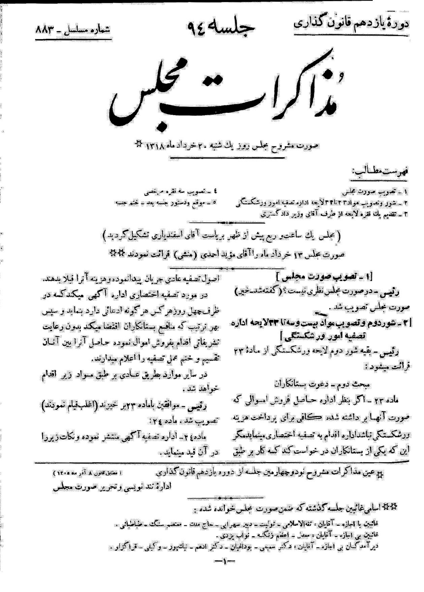 | کنونی | ۴ اکتبر ۲۰۱۳، ساعت ۱۳:۳۴ | ۲٬۵۰۶×۳٬۵۳۹، ۷ صفحه (۴٫۴۶ مگابایت) | Bijan (گفتگو | مشارکتها) | {{PD-Iran}} رده:مجلس شورای ملی مذاکرات دوره قانونگذاری یازدهم - ۲۰ شهریور ۱۳۱۶ تا ۲۷ شهریور ۱۳۱۸ |