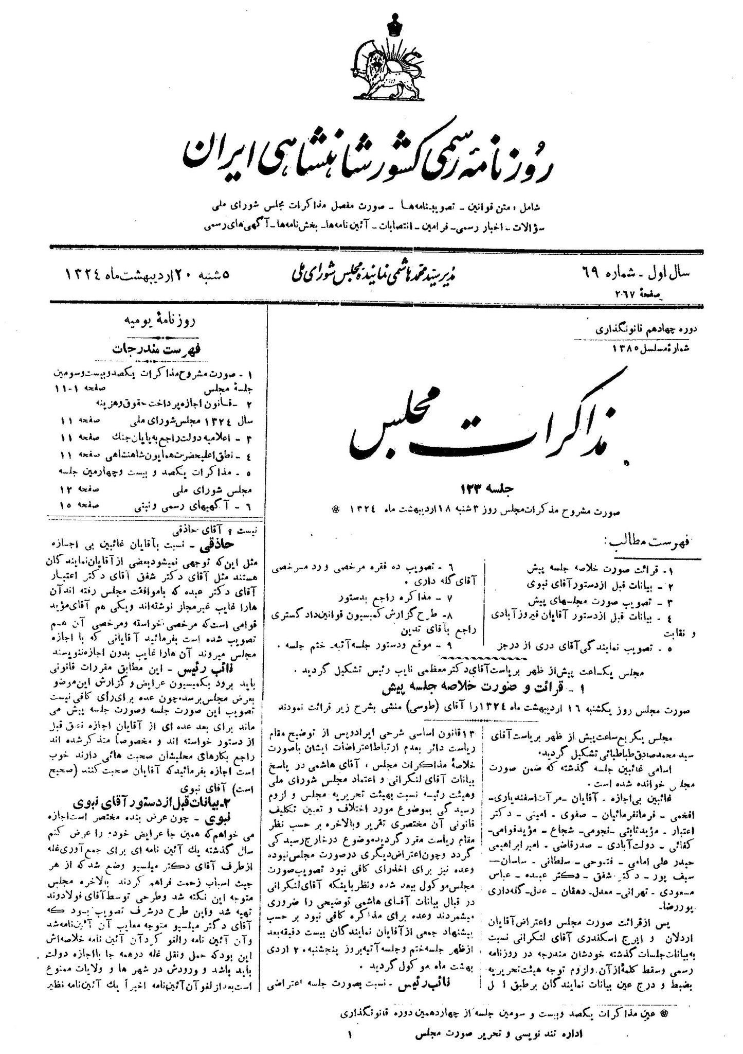 | کنونی | ۸ آوریل ۲۰۱۲، ساعت ۰۷:۱۰ | ۵٬۱۲۷×۷٬۲۶۴، ۸ صفحه (۱۷٫۰۵ مگابایت) | Farhad (گفتگو | مشارکتها) | == Licensing == {{PD-Iran}} رده:مجلس شورای ملی مذاکرات دوره قانونگذاری چهاردهم - ۶ اسفند ۱۳۲۲ تا ۲۱ اسفند ۱۳۲۴ |