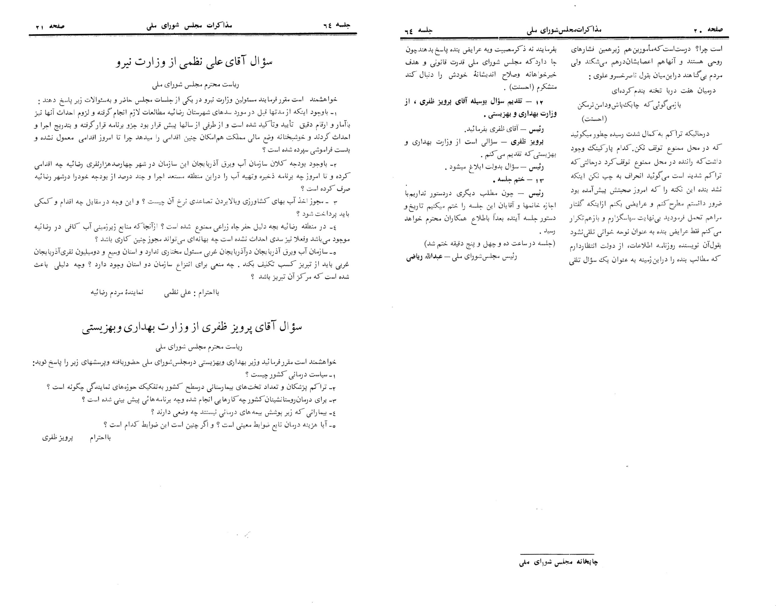 | کنونی | ۱۱ ژوئن ۲۰۱۳، ساعت ۰۶:۰۷ | ۳٬۰۴۱×۴٬۶۶۲، ۱۱ صفحه (۹٫۳ مگابایت) | Bijan (گفتگو | مشارکتها) | {{PD-Iran}} رده:مجلس شورای ملی مذاکرات دوره قانونگذاری بیست و چهارم - ۱۷ شهریور ۱۳۵۴ تا ۲۱ بهمن ۲۵۳۷ شاهنشاهی |