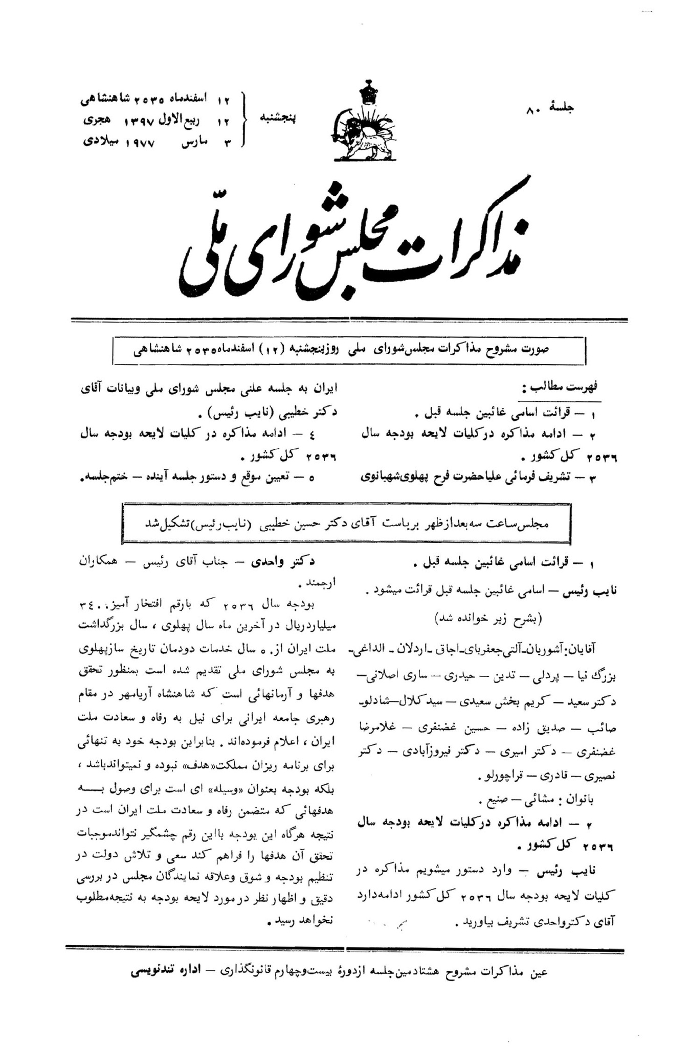 | کنونی | ۱۱ ژوئن ۲۰۱۳، ساعت ۱۰:۰۳ | ۳٬۰۸۳×۴٬۶۷۲، ۱۳ صفحه (۱۰٫۹۹ مگابایت) | Bijan (گفتگو | مشارکتها) | {{PD-Iran}} رده:مجلس شورای ملی مذاکرات دوره قانونگذاری بیست و چهارم - ۱۷ شهریور ۱۳۵۴ تا ۲۱ بهمن ۲۵۳۷ شاهنشاهی |
