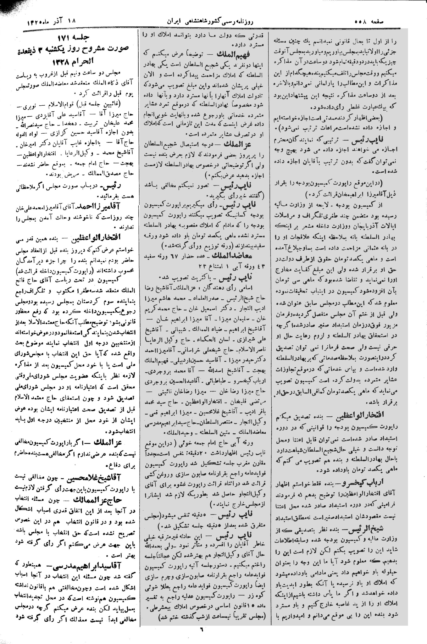 | کنونی | ۱۸ آوریل ۲۰۱۳، ساعت ۱۲:۴۰ | ۵٬۸۳۵×۸٬۸۰۰، ۸ صفحه (۲۲٫۱۱ مگابایت) | Bijan (گفتگو | مشارکتها) | {{PD-Iran}} رده:مجلس شورای ملی مذاکرات دوره قانونگذاری دوم - ۲۴ آبان ۱۲۸۸ تا ۲۳ دی ۱۲۹۰ |