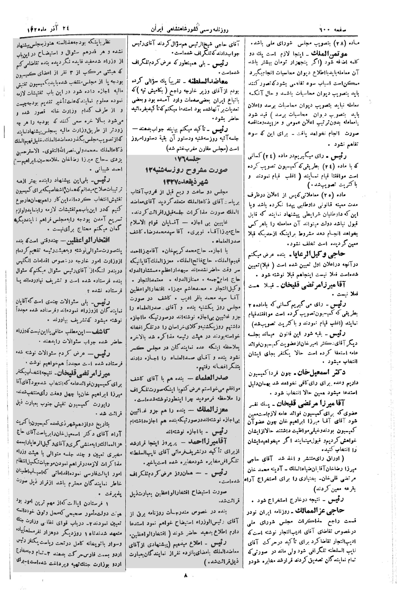 | کنونی | ۱۸ آوریل ۲۰۱۳، ساعت ۱۳:۰۸ | ۵٬۹۸۳×۸٬۸۶۴، ۵ صفحه (۱۴٫۷۴ مگابایت) | Bijan (گفتگو | مشارکتها) | {{PD-Iran}} رده:مجلس شورای ملی مذاکرات دوره قانونگذاری دوم - ۲۴ آبان ۱۲۸۸ تا ۲۳ دی ۱۲۹۰ |